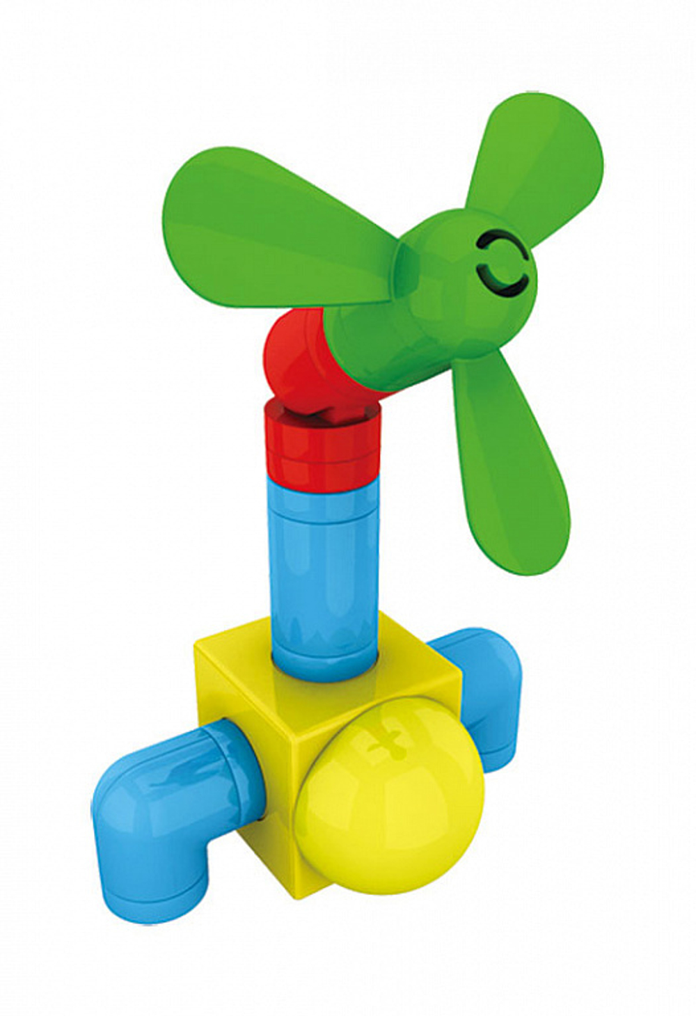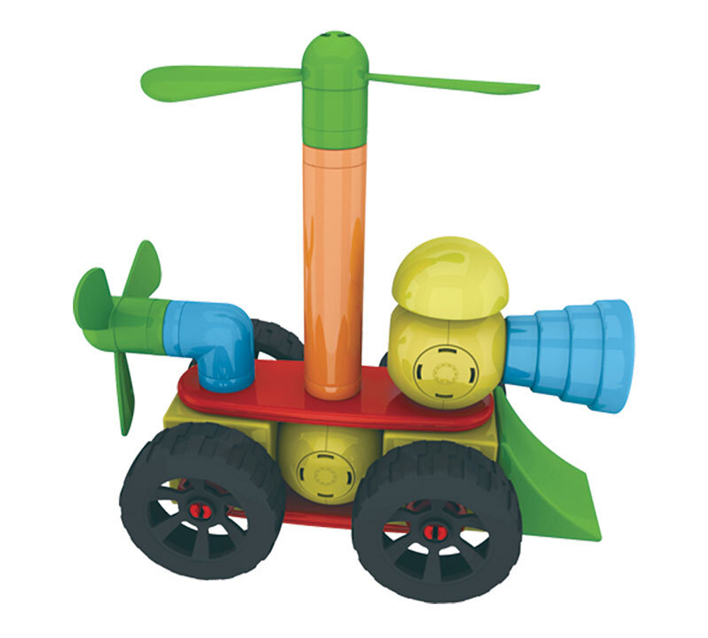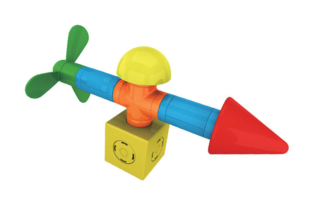Набора включает в себя 40 различных красочных конструкторских деталей, которые магнитно защелкиваются между собой, а при вращении соединенных деталей, создается эффект трещетки.