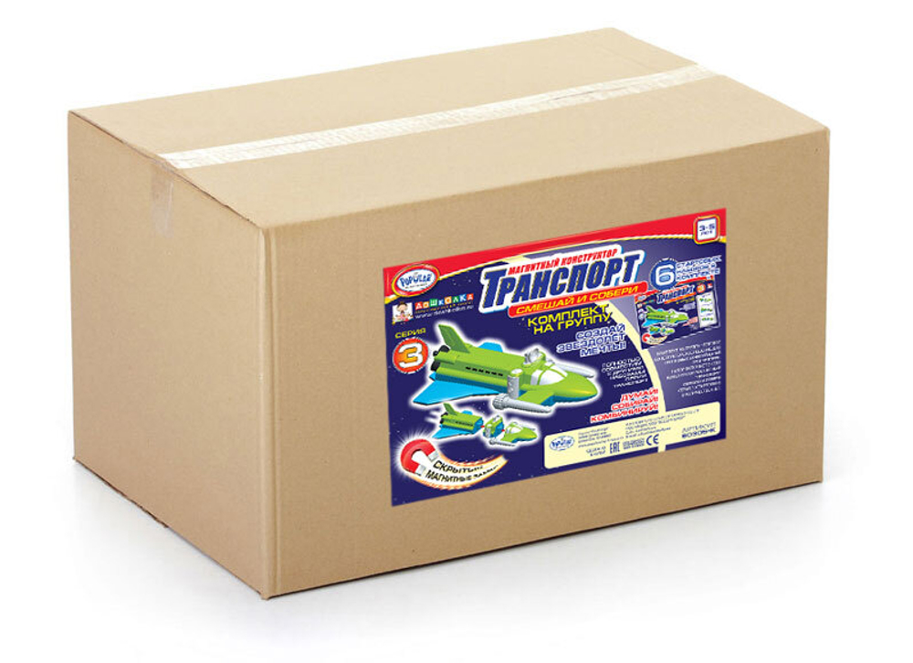 Набор включает в себя Магнитный конструктор ТРАНСПОРТ "Смешай и собери" серия 3 (стартовый набор) в количестве 6 шт.