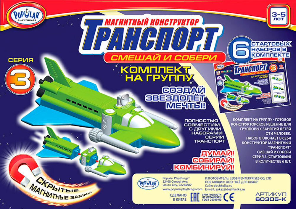 Магнитный конструктор Popular Playthings Транспорт "Смешай и собери. Серия 3" (Комплект на группу) ✅