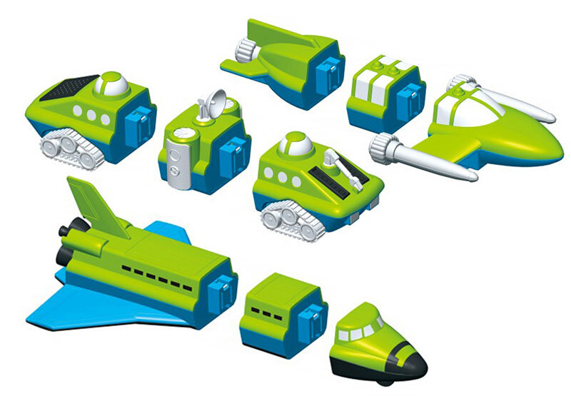 Магнитный конструктор ТРАНСПОРТ "Смешай и собери" серия 3 (стартовый) - это набор позволяющий собрать множество различных транспортных средств космической тематики и состоящий из 3-х базовых моделей (космический челной, луноход и звездолёт).
