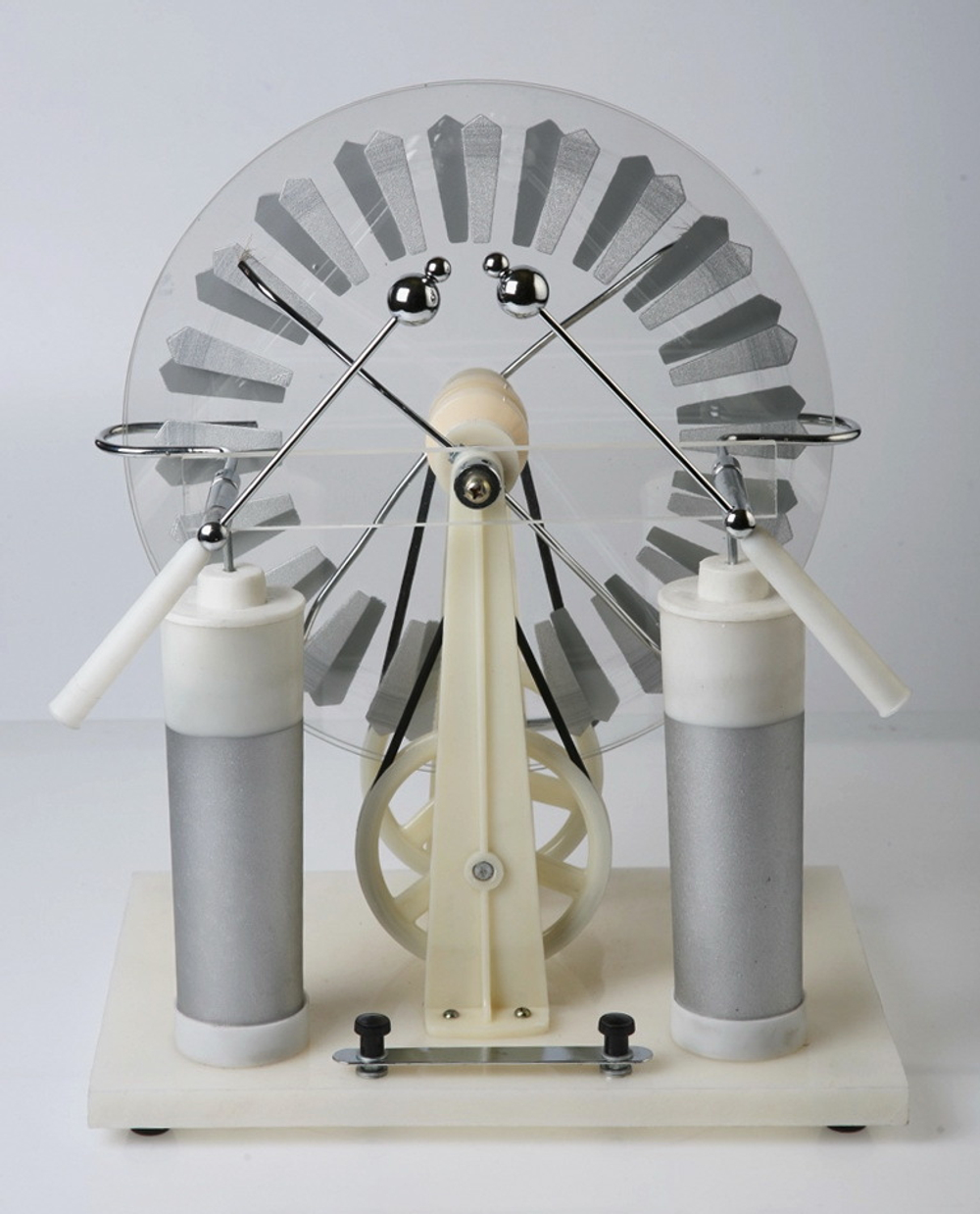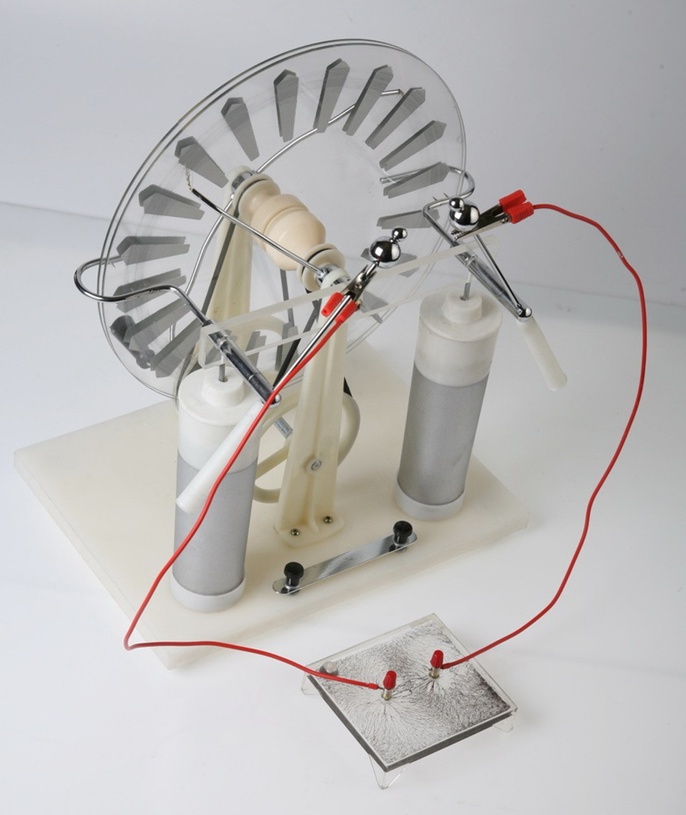 Данный прибор также может применяться самостоятельно для проведения серии экспериментов, например, для определения электростатической индукции, получения искрового разряда, точечного электрического разряда, изменения емкости электрического конденсатора (имеется в виду лейденская банка генератора) и т.д.