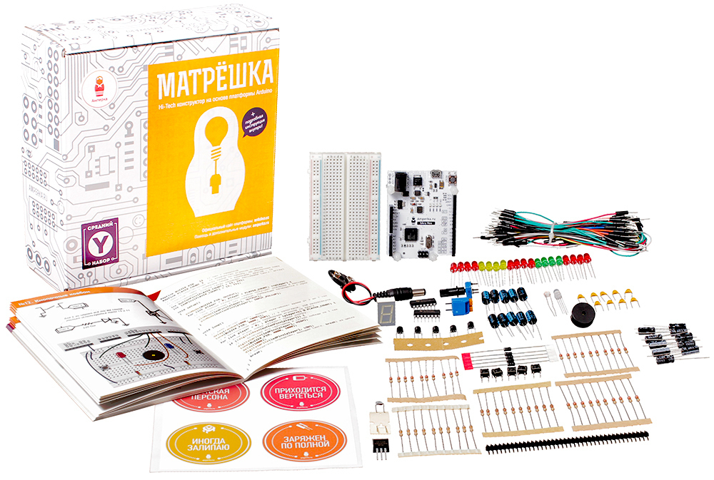 Комплектация «Матрёшка Y» содержит всё необходимое, чтобы собрать 17 из них. Вы можете рассмотреть комплектацию «Матрёшка Z»: она содержит больше деталей, а потому позволяет собрать все 20 устройств.