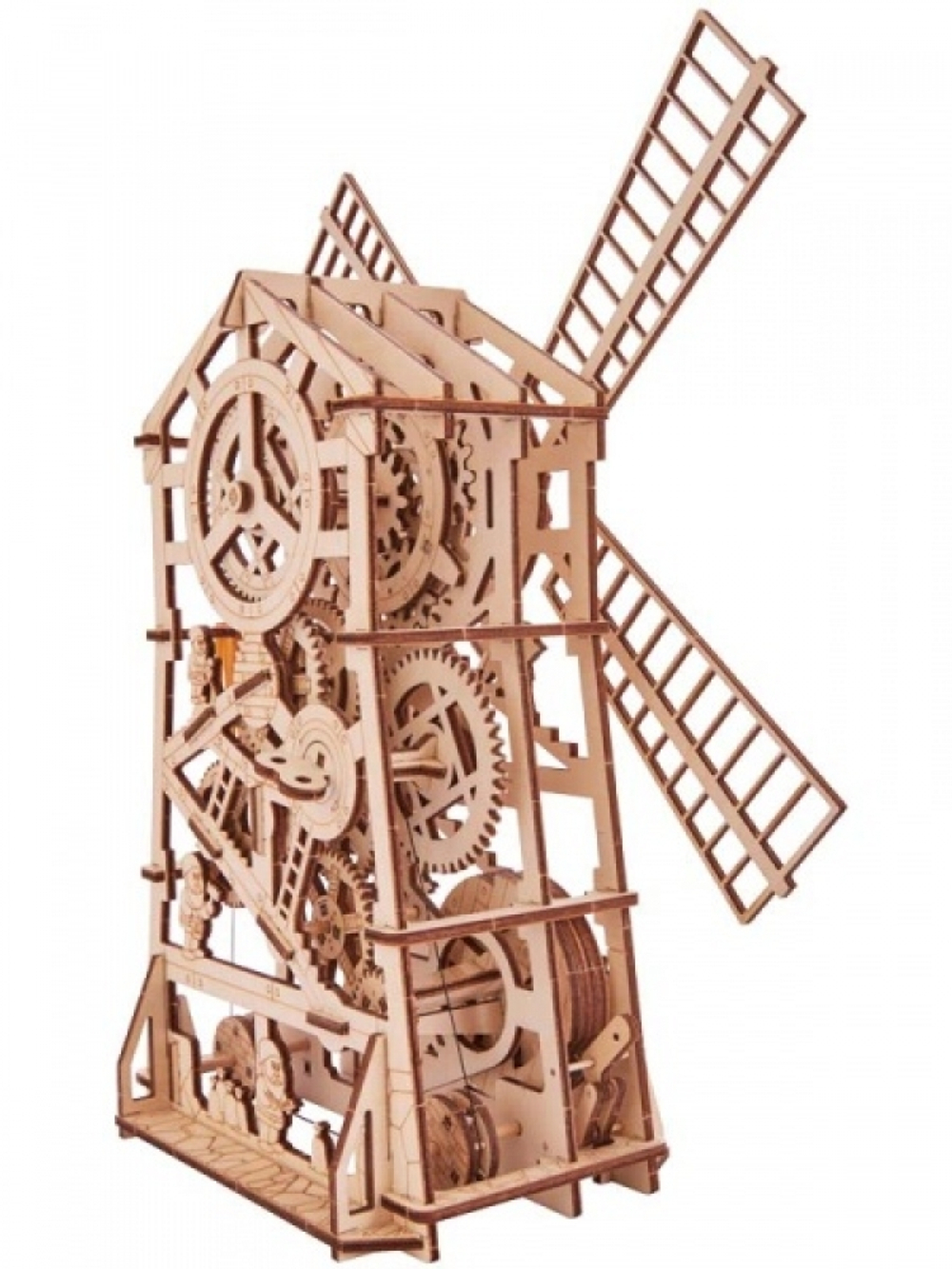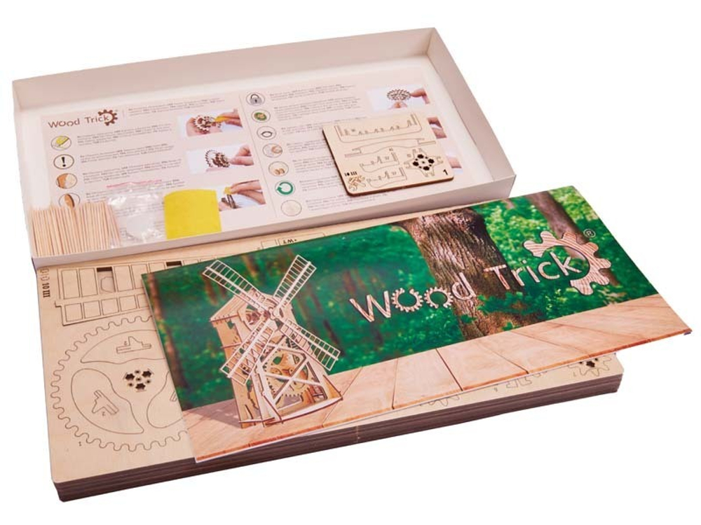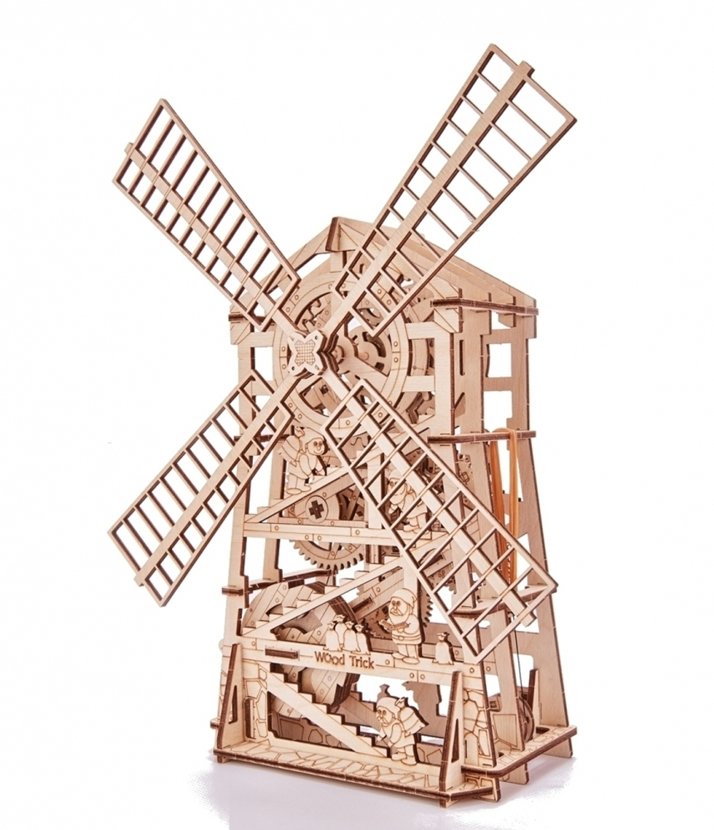 Команда Вуд Трик не только создает новые конструкторы, но и модернизирует старые. Тому пример Механическая мельница – одна из самых популярных моделей, теперь с заводным механизмом.