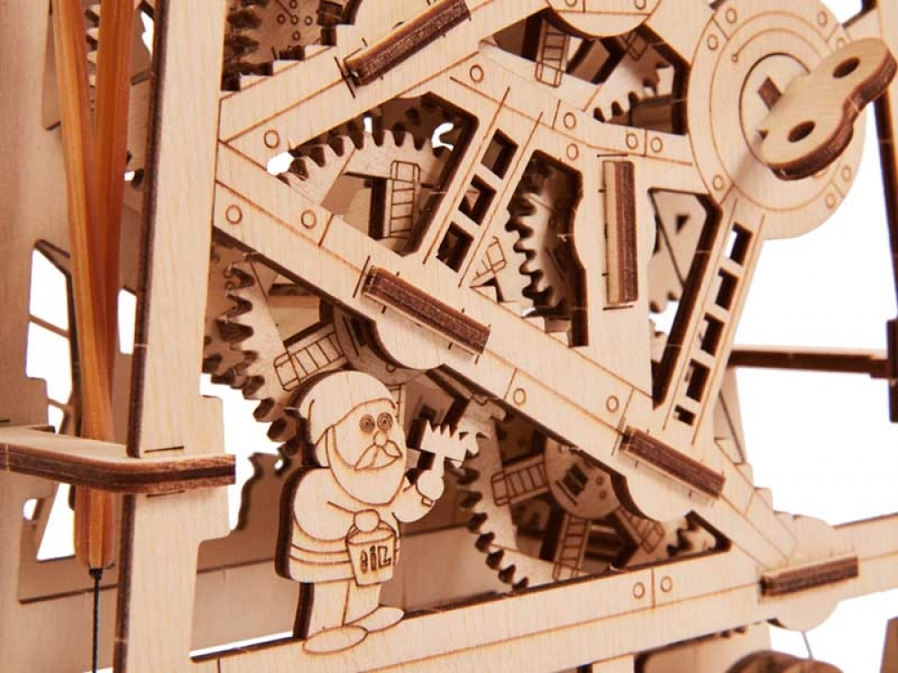 Команда Вуд Трик не только создает новые конструкторы, но и модернизирует старые. Тому пример Механическая мельница – одна из самых популярных моделей, теперь с заводным механизмом. Чтобы запустить ее в работу, необходимо сделать несколько оборотов ключа и отпустить тормозной рычаг. И не нужен ветер, теперь лопасти мельницы могут крутиться, когда вам захочется и столько, сколько пожелаете.