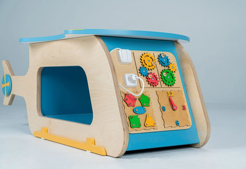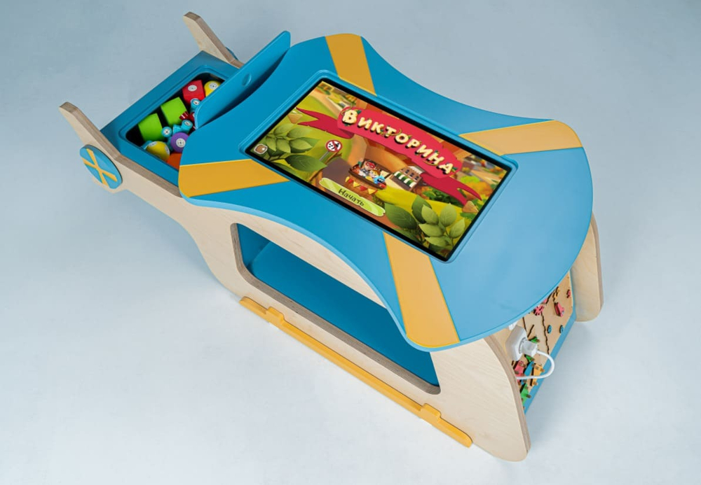 Методический интерактивный комплекс «Вертолет» представляет собой многофункциональное игровое пространство с тремя зонами. Это конструирование, занятия на интерактивной панели и бизиборд.