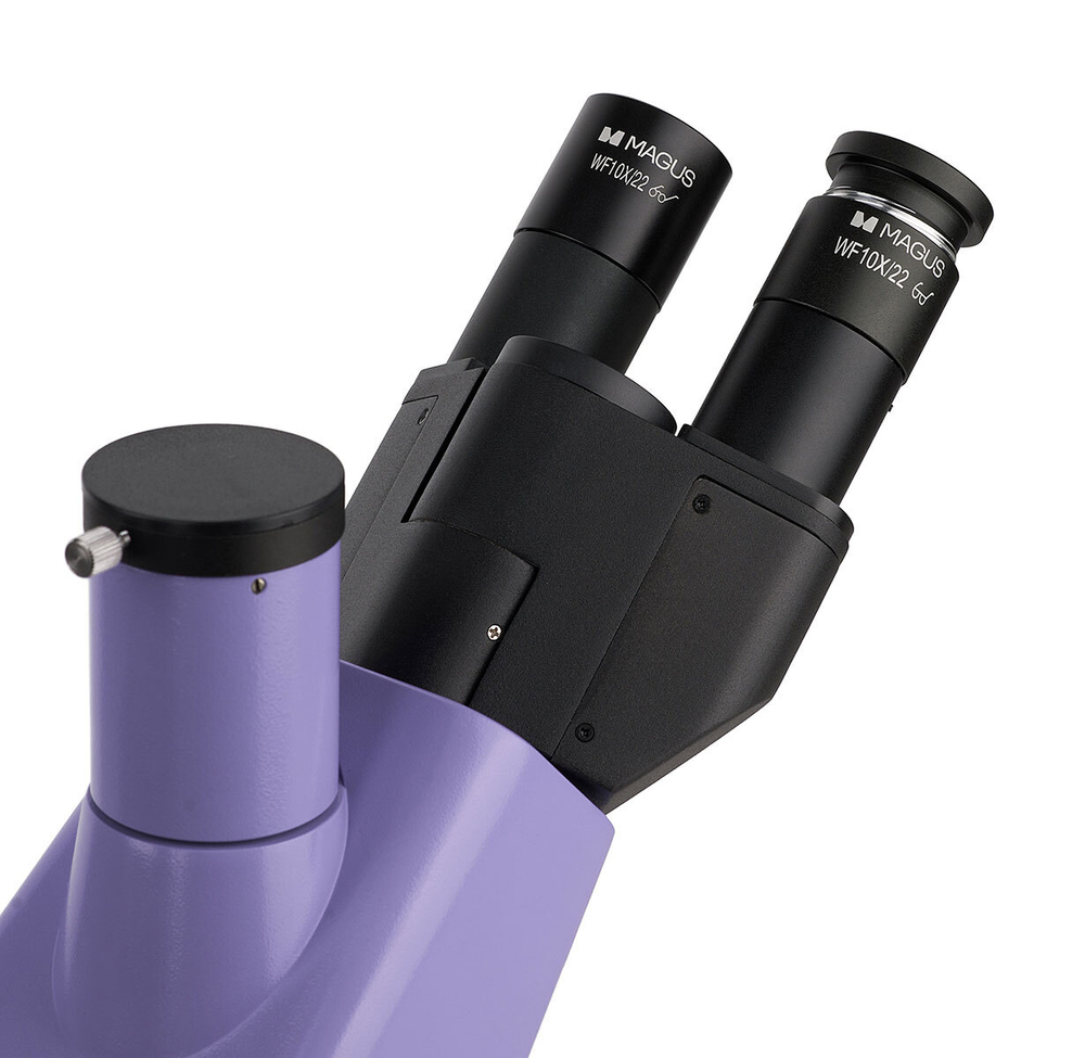 Оптическая длина тубуса – бесконечность. Во время сборки микроскопа пользователь разворачивает тубусы насадки на 180° и выбирает высоту выноса зрачка в соответствии с собственным ростом. Визуальная насадка тринокулярная.