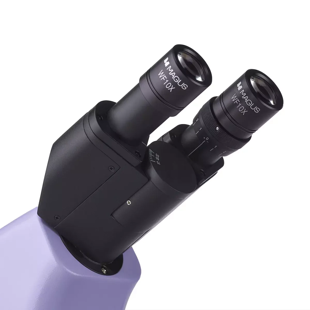 - Диоптрийная подвижка на левом окулярном тубусе, возможность установки в него цифровой камеры