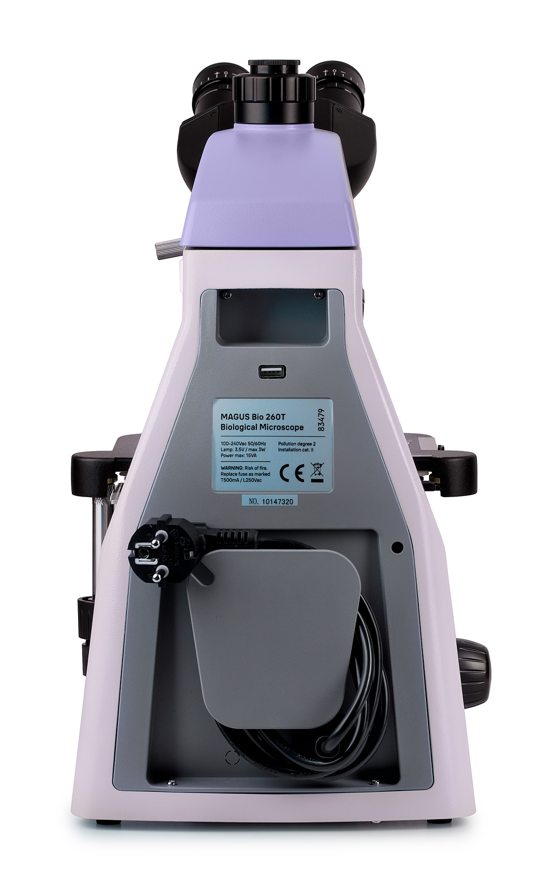 В микроскопе установлен осветитель проходящего света с трехваттным светодиодом. Яркость освещения регулируется, а система «умного» освещения переключает его интенсивность в зависимости от выбранного рабочего объектива. Каждый объектив пропускает разное количество света, и при смене рабочего объектива исследователь наблюдает в окуляре резкие изменения интенсивности освещения. Интеллектуальная система настройки света позволяет пользователю один раз установить интенсивность света для каждого положения револьвера (для каждого объектива) – и при их смене свет будет меняться автоматически. Цветовая температура при изменении яркости не меняется. На микроскопе можно настроить освещение по Кёлеру: с его помощью препарат подсвечивается равномерно, нет темных участков по краям поля зрения, а частички пыли или образ источника света не будут видны наблюдателю и не помешают в исследовании. Светодиод в осветителе рассчитан на 50 000 часов работы.