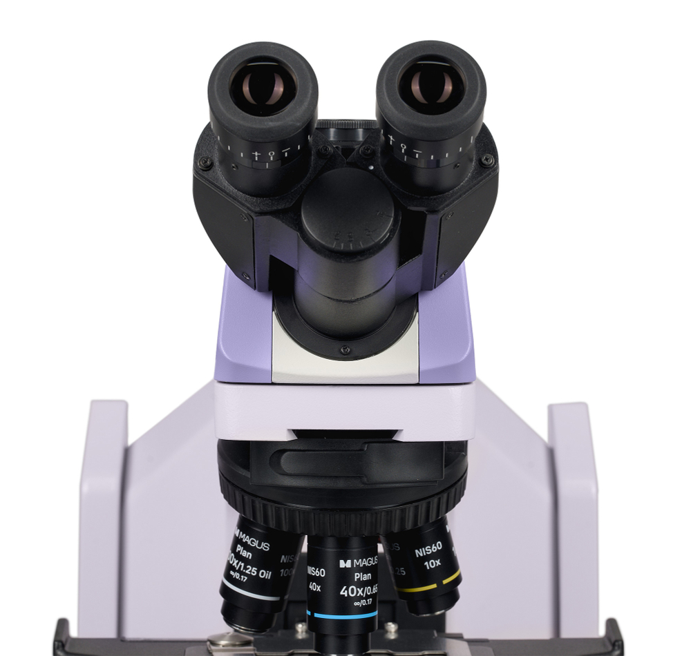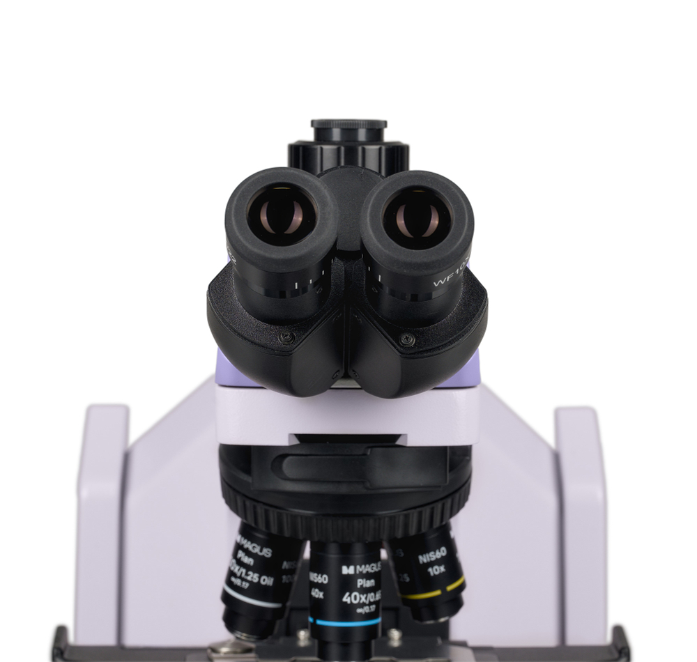 - Тринокулярная насадка с вертикальным тубусом для установки цифровой камеры и изменением высоты для подстройки под рост наблюдателя; деление светового потока 50/50