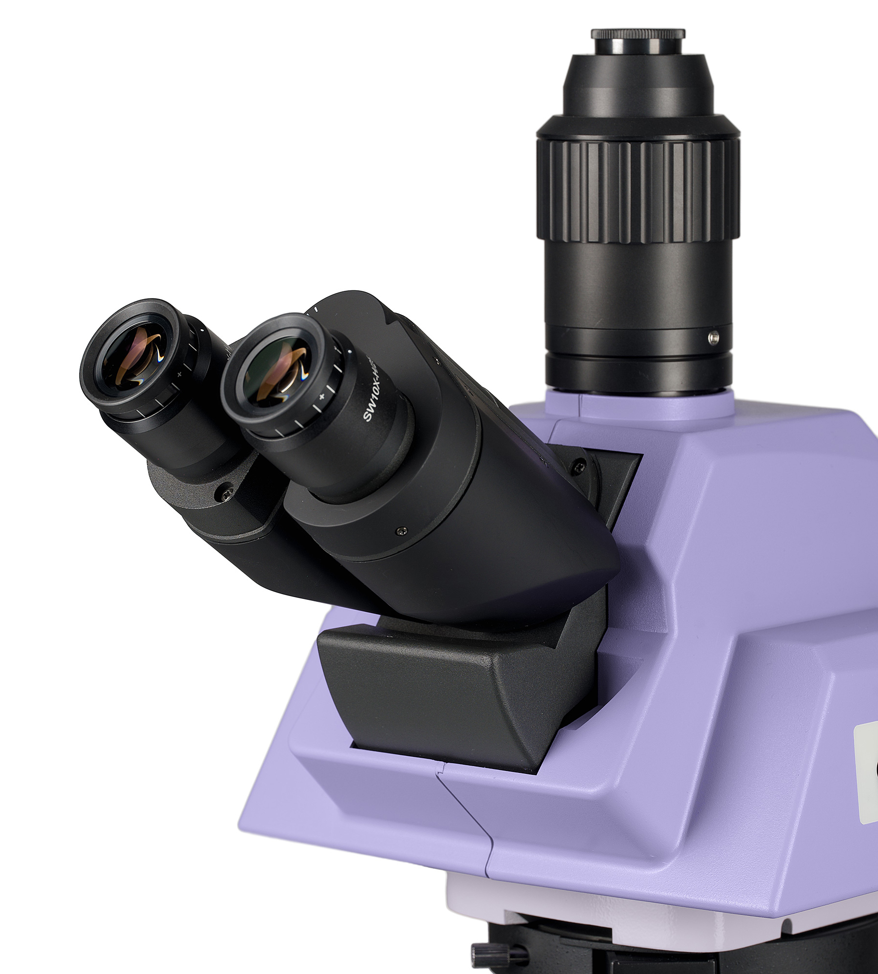 Тринокулярная визуальная насадка с оптикой, рассчитанной на бесконечность. Пользователь выбирает наиболее комфортный угол наклона визуальной насадки в диапазоне от 0 до 35°. Цифровая камера устанавливается в вертикальный тубус с каналом визуализации. Световой поток переключается 0/100, 100/0 или 80/20.