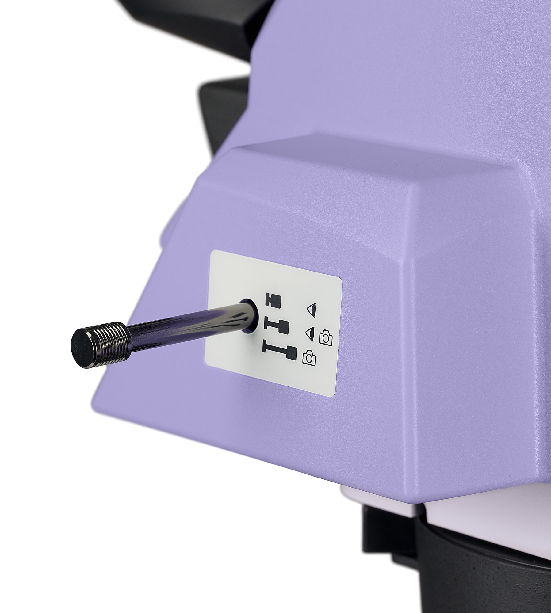 - Тринокулярная насадка с вертикальным тубусом для установки цифровой камеры и изменением угла наклона; переключение светового потока 0/100, 100/0 или 80/20