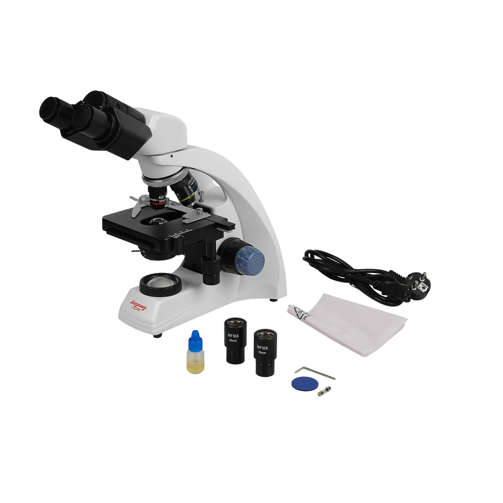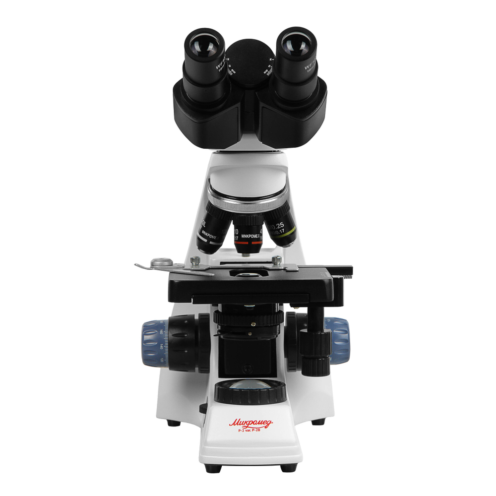 Микроскоп спроектирован на длину тубуса 160 мм. Оптическая система микроскопа включает в себя визуальную насадку с окулярным тубусом, объективы на револьверном устройстве, коллектор и конденсор с откидным держателем светофильтров. В комплект микроскопа входят объективы с ахроматической коррекцией 4х, 10х, 40х и 100х OIL для исследования с масляной иммерсией.