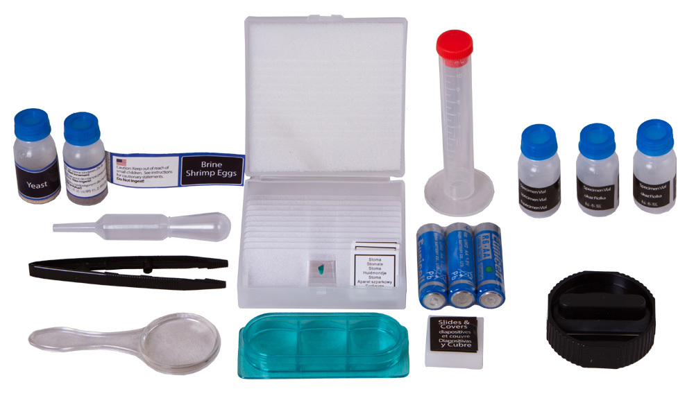 В комплекте поставки есть увлекательный набор для проведения опытов. Все эксперименты можно проводить дома без присмотра родителей. С помощью набора и микроскопа Bresser Junior 40x-640x ребенок сможет изучить готовые микропрепараты, научиться создавать собственные образцы для исследований, выращивать артемию в инкубаторе. Микроскоп Bresser Junior 40x-640x – отличный выбор для первых шагов в науку.