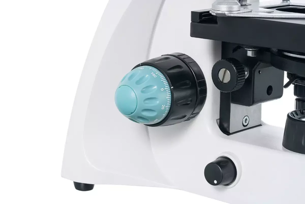 Бинокулярная насадка имеет небольшой наклон, что делает длительную работу с микроскопом более удобной. При необходимости насадку можно разворачивать в любую сторону – доступны все 360°. Широкопольные окуляры дают хороший обзор и обеспечивают 10-кратное приближение. Четыре ахроматических объектива передают контрастное и «живое» изображение, позволяя рассматривать мелкие структуры. Общее увеличение микроскопа находится в диапазоне от 40 до 1000 крат. Объективы 40х и 100х снабжены пружинящими оправами передней линзы, 100-кратный объектив можно использовать для иммерсионных наблюдений.