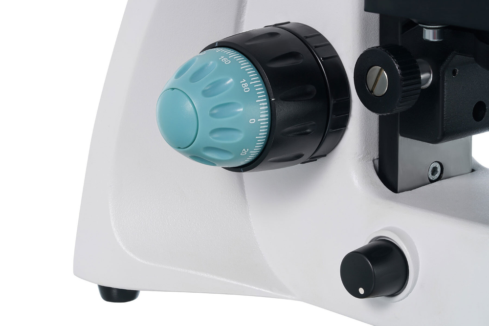 Насадка состоит из бинокулярного визуального блока (он имеет небольшой наклон в 30°) и отдельно расположенной вертикальной трубки (в нее можно установить цифровую камеру). Насадка вращается, что делает работу в лаборатории более удобной. Окуляры широкопольные и дают увеличение в 10 крат. Ахроматические объективы уже установлены в револьверное устройство. 40-кратный и 100-кратный объективы имеют защиту передней линзы – специальную пружинящую оправу. 100-кратный объектив используется для масляной иммерсии. Оптическая схема микроскопа позволяет проводить исследования на увеличении от 40 до 1000 крат. Для настройки резкости применяется коаксиальный механизм грубой и точной фокусировки.