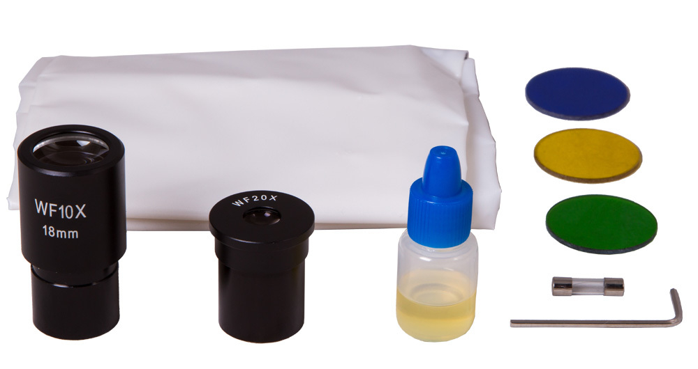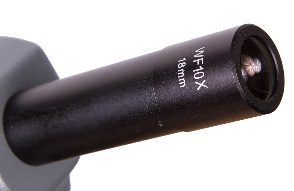 Микроскоп Levenhuk 700M имеет широкий диапазон увеличений. В базовой комплектации вам будут доступна кратность от 40х до 2000х. Револьверное устройство рассчитано на 4 объектива. Поворачивая его, можно менять увеличение микроскопа прямо во время наблюдений. Все объективы ахроматические, снижающие естественные искажения и аберрации картинки. Объектив максимальной кратности рассчитан на иммерсионный метод наблюдений. В комплекте идет флакон иммерсионной жидкости, которая увеличивает яркость образца и улучшает глубину резкости. Микроскоп комплектуется двумя широкоугольными окулярами – 10 крат и 20 крат. Для настройки резкости используется система грубой и точной фокусировки.