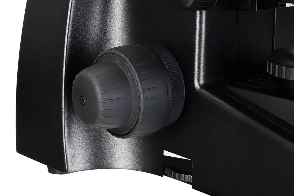 Фокусировка выполняется путем перемещения предметного столика по вертикали, ее можно выполнять грубо и тонко. Отдельной ручкой столик перемещается в горизонтальной плоскости по двум взаимно перпендикулярным осям. Столик дополнен препаратодержателем на два образца. Также его конструкция улучшена для повышения комфорта пользователя – убрана выдвижная зубчатая рейка. Столик перемещается плавно, без рывков.