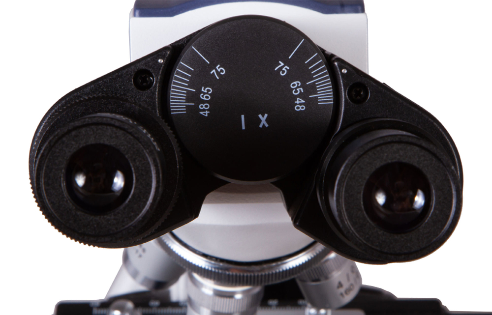 Ахроматическая оптика с антигрибковым покрытием позволяет детально рассматривать даже сложные структуры. Широкопольные окуляры дают 10-кратное увеличение, у них есть диоптрийная коррекция. Хороший угол обзора дает возможность изучать протяженные образцы. В револьверное устройство устанавливаются четыре объектива. Они дают разное увеличение, объективы с высокой кратностью имеют пружинящие оправы для защиты от случайных повреждений. При наблюдениях можно применять масляную иммерсию (используется 100-кратный объектив). Настройка резкости производится вращением ручек грубой и точной фокусировки.