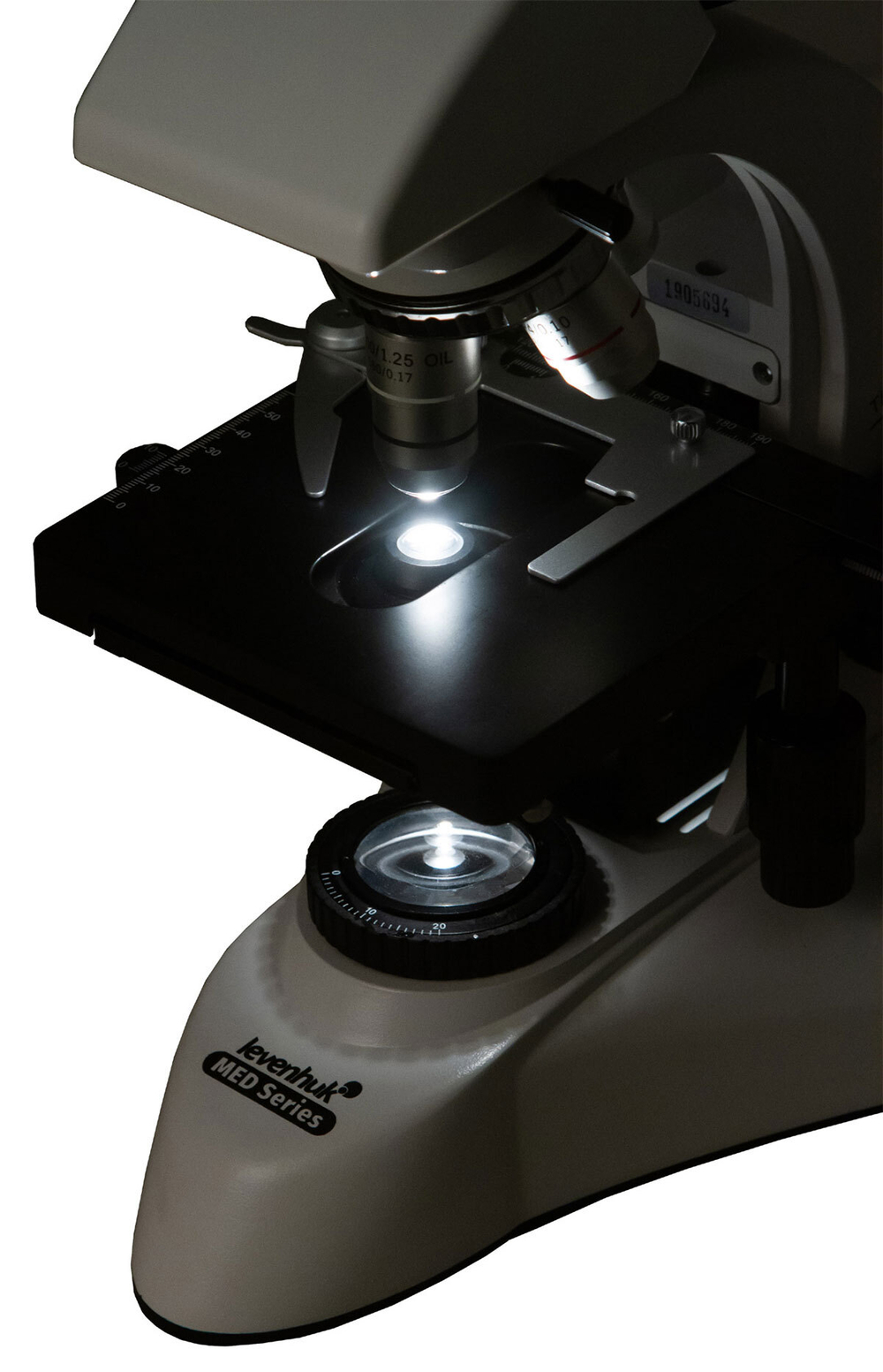 Тринокулярный микроскоп Levenhuk MED 20T – профессиональный оптический прибор для работы с микрообразцами на увеличении от 40 до 1000 крат. Он позволяет настраивать освещение по методу Келера и использовать при наблюдениях масляную иммерсию. Микроскоп станет находкой для сотрудника клинико-диагностической лаборатории, кафедры биохимии или микробиологии, медицинского или оздоровительного центра, научного института.