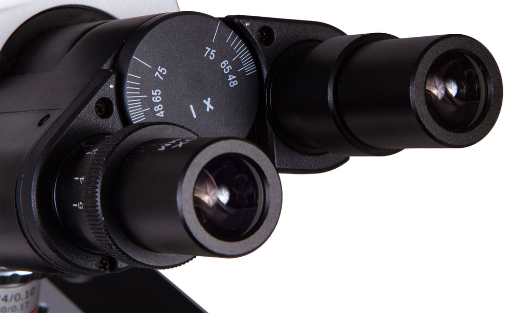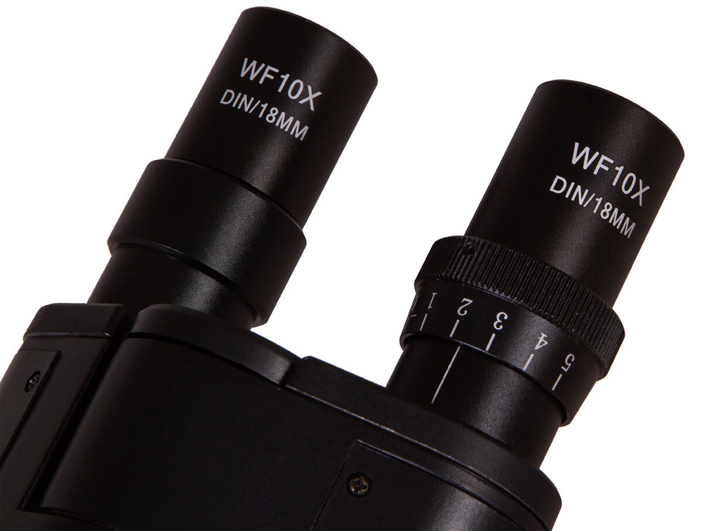 Оптические аксессуары – это широкопольные окуляры и полупланахроматические объективы. Окуляры дают 10-кратное увеличение и обеспечивают хороший обзор. Для удобства пользователей с неидеальным зрением на окулярах можно корректировать диоптрии. Объективы дают разное увеличение и заметно выравнивают поле зрения. У 40-кратного и 100-кратного объективов есть пружинящие оправы. Кроме того, 100-кратный объектив можно использовать для наблюдений иммерсионным методом. Оптика защищена антигрибковым покрытием. Есть грубая и точная настройка резкости.
