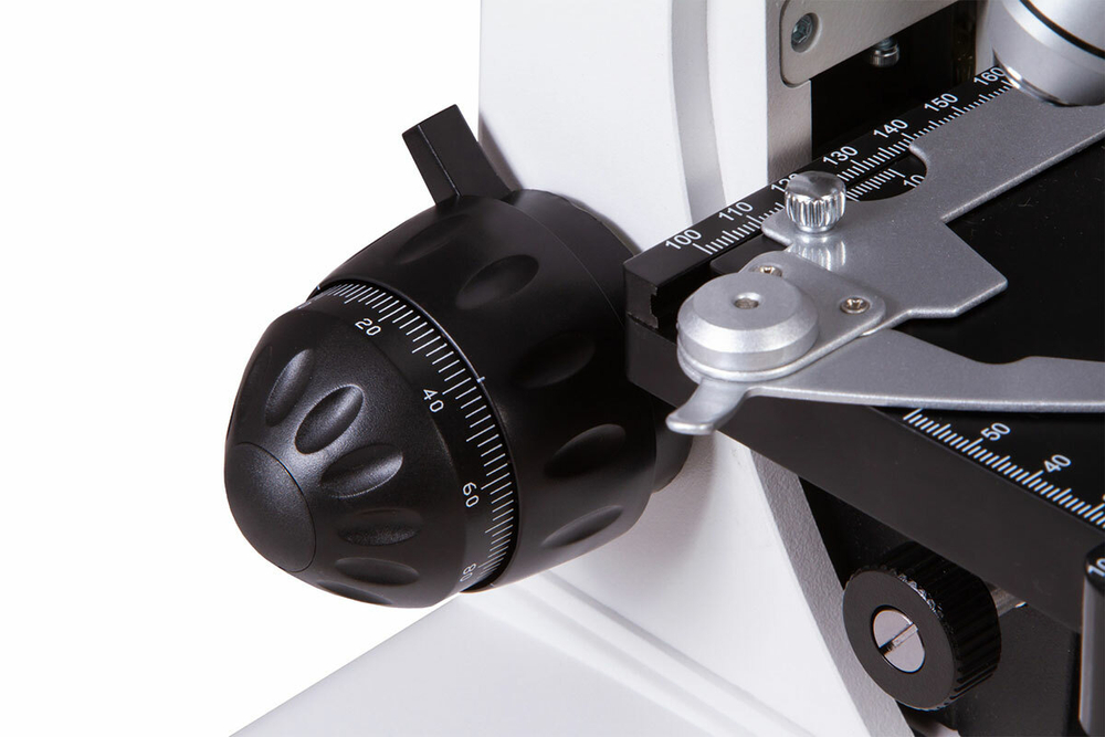 Широкопольные окуляры позволяют изучать протяженные образцы, дают 10-кратное увеличение и имеют диоптрийную коррекцию. Планахроматические объективы улучшают контрастность и цветопередачу, позволяют видеть больше деталей и убирают хроматизм. Кроме того, поле зрения становится более плоским, что особенно важно при профессиональных микроисследованиях. Вся оптика сделана из стекла и защищена антигрибковым покрытием. Объективы с большими увеличениями имеют пружинящие оправы, а со 100-кратным объективом можно использовать масляную иммерсию. Для настройки резкости используются ручки грубой и точной фокусировки.
