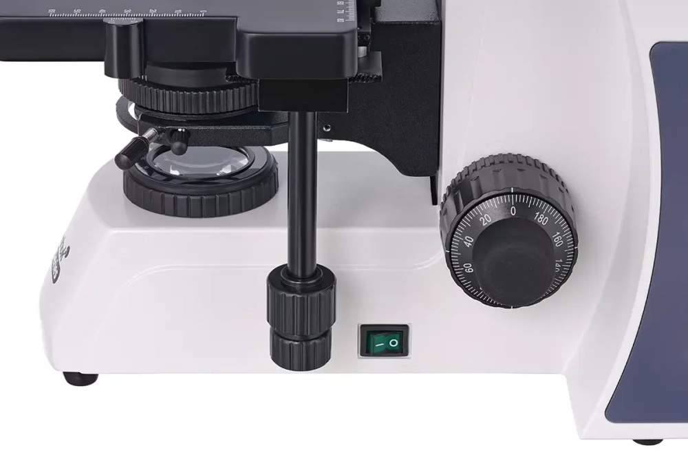 Образцы размещаются на двухкоординатном предметном столике при помощи препаратоводителя. Яркая 5-ваттная подсветка находится в нижней части микроскопа. Есть конденсор Аббе с ирисовой диафрагмой. Яркость подсветки регулируется, для ее питания используется сеть переменного тока. Можно настраивать освещение по методу Келера.