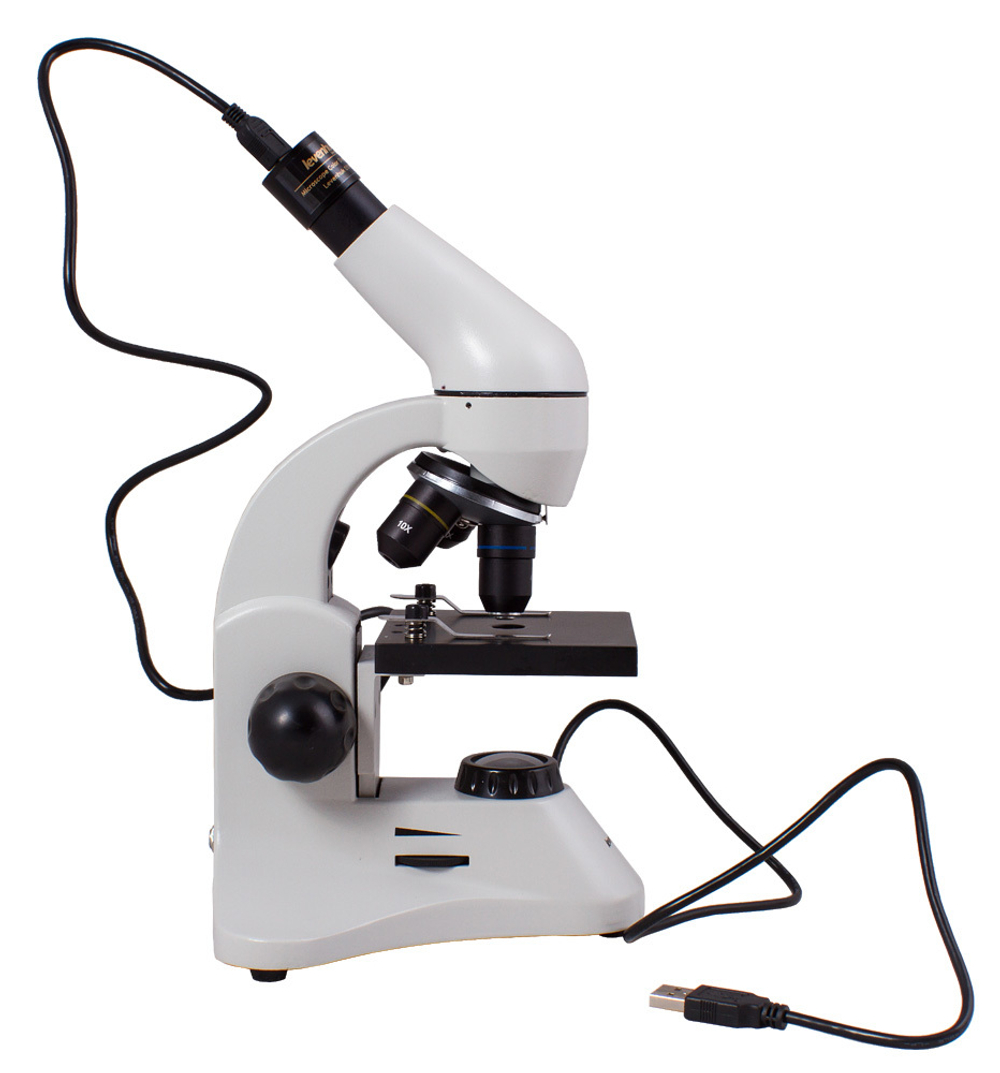 Микроскоп поставляется с качественной цифровой камерой 2 Мпикс. Перед началом работы камеру нужно установить в окулярный узел вместо окуляра и подключить к компьютеру с помощью USB-кабеля. Увеличенное изображение микропрепарата будет видно на мониторе – это удобно при групповой работе или демонстрации опыта. В комплект входит специальное программное обеспечение, позволяющее делать фотографии и снимать видеоролики.