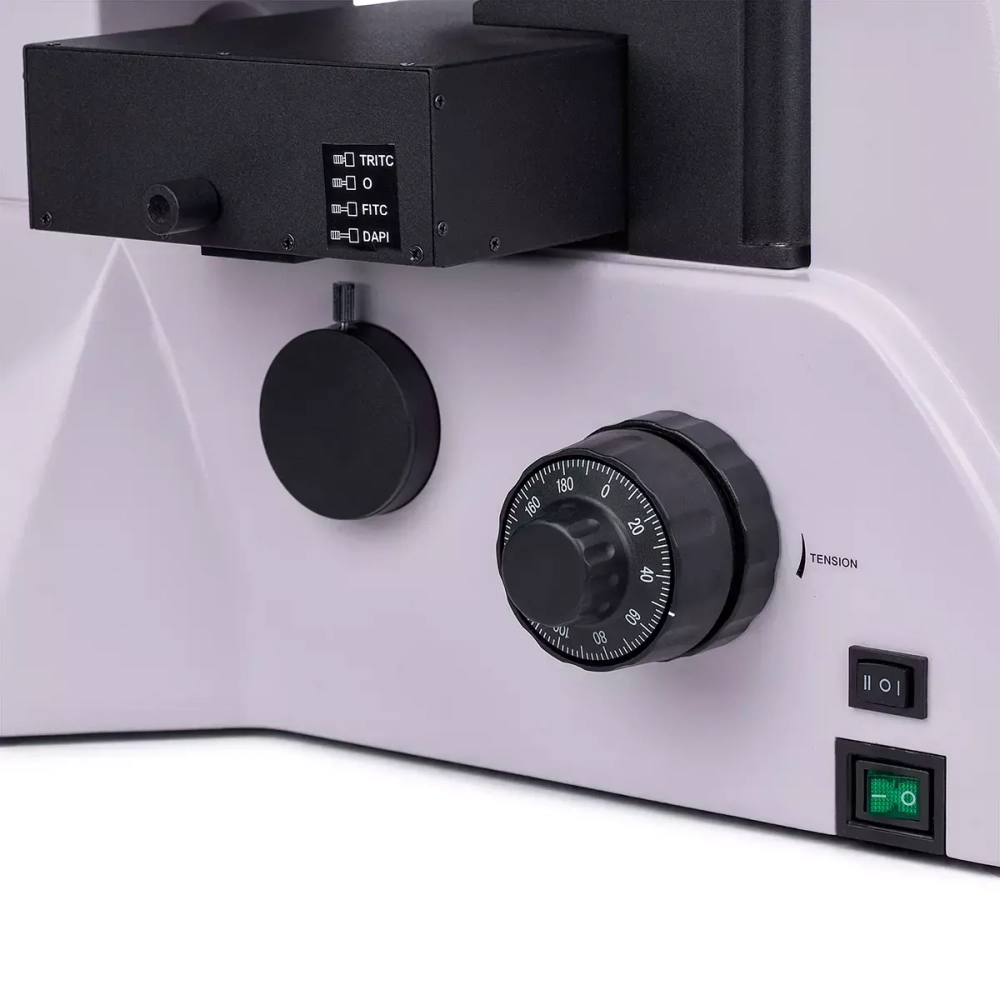Источниками проходящего и отраженного света выступают 5-ваттные светодиоды. Они обеспечивают яркое и равномерное освещение, служат 50 000 часов без замены, не выделяют тепло при работе. Светодиодное освещение безопаснее, чем ртутное, экономичное и не требует обслуживания, поэтому люминесценция на базе светодиодов рекомендуется для обучения. В этом микроскопе используются фильтры возбуждения люминесценции для работы с флюорохромами DAPI, FITC и TRITC.