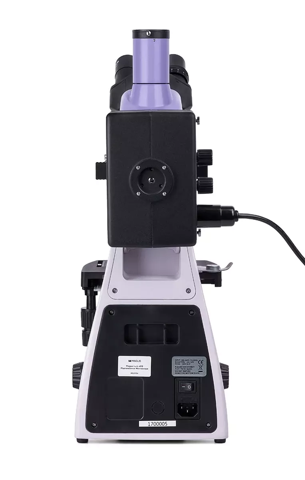 Оптика микроскопа планахроматическая с расчетом на бесконечность. Комплектные объективы представлены тремя моделями для светлого поля и одной моделью (микрофлюаром) для люминесценции. Количество свободных гнезд в револьверном устройстве – пять, одно гнездо может быть использовано для установки дополнительного объектива из линейки аксессуаров MAGUS. Развернутый «от наблюдателя» револьвер удобен в работе, так как позволяет свободно видеть рабочий объектив.