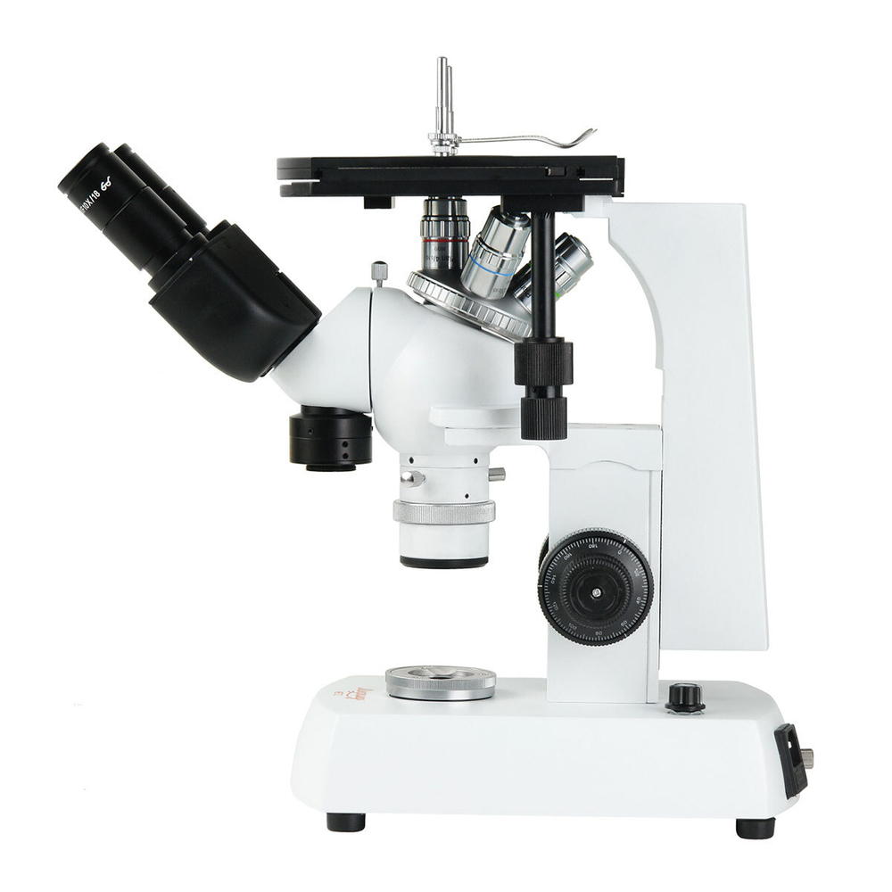 Инвертированная конструкция микроскопа Микромед МЕТ С предназначена для исследования габаритных объектов, поэтому его конструкция обеспечивает большой диапазон перемещения оптической головки. Фокусировка осуществляется перемещением по вертикали оптической головки с объективами и тубусами. Такая особенность связана с тем, что на предметном столике размещаются крупные и тяжелые образцы, поэтому столик должен быть зафиксирован. Для перемещения оптической головки используется двухступенчатый механизм – с его помощью осуществляется предварительная настройка, или грубая фокусировка, и окончательная настройка, или тонкая фокусировка. Этот механизм снабжен регулятором усилия и ограничителем величины хода механизма.