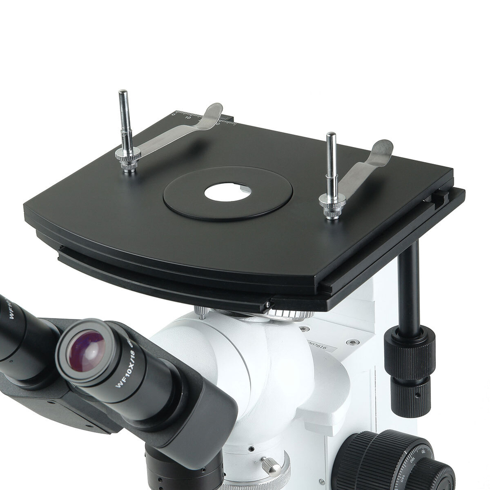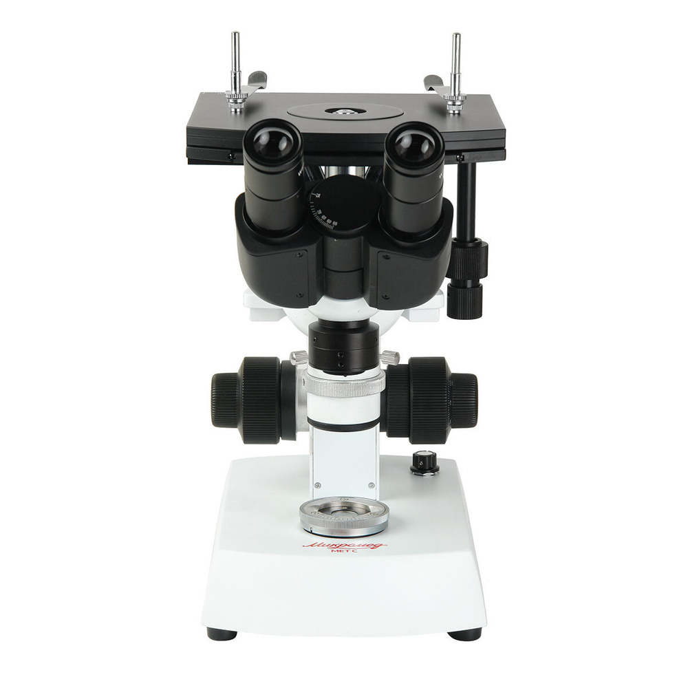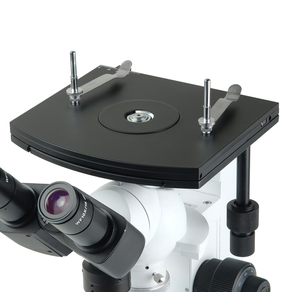 Микроскоп Микромед МЕТ С оборудован предметным столиком, позволяющим точно и плавно перемещать объект наблюдения в пределах 30 / 30 мм по координатам X / Y. В отличие от прямых микроскопов, столик микроскопа Микромед МЕТ С расположен над объективом и имеет увеличенные размеры - 180 х 165 мм. Такое устройство обусловлено большими размерами и весом исследуемых объектов - максимальная нагрузка на предметный столик может составлять 2 килограмма. По запросу микроскоп может быть укомплектован дополнительным препаратоводителем со шкалой и нониусом для особо точных подвижек образца по обоим координатам.