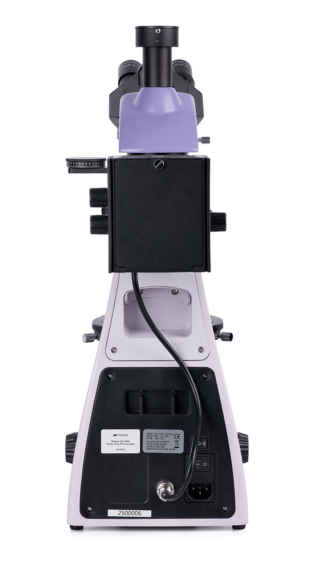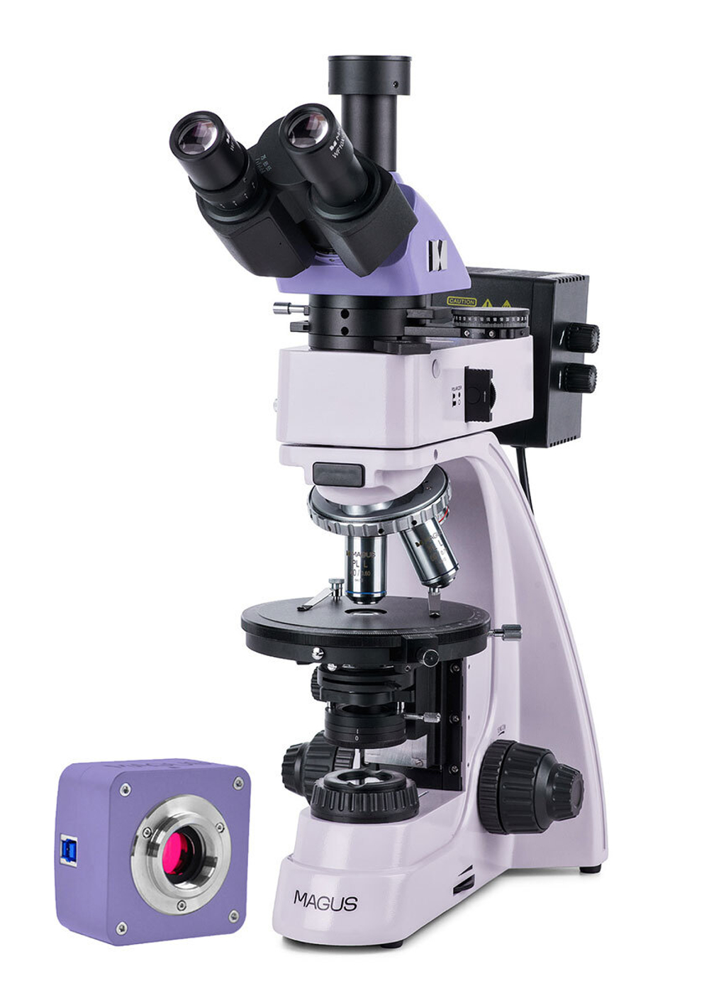 Объективы микроскопа свободны от внутренних напряжений. В промежуточном тубусе установлены анализатор и линза Бертрана, есть слот для установки компенсаторов.