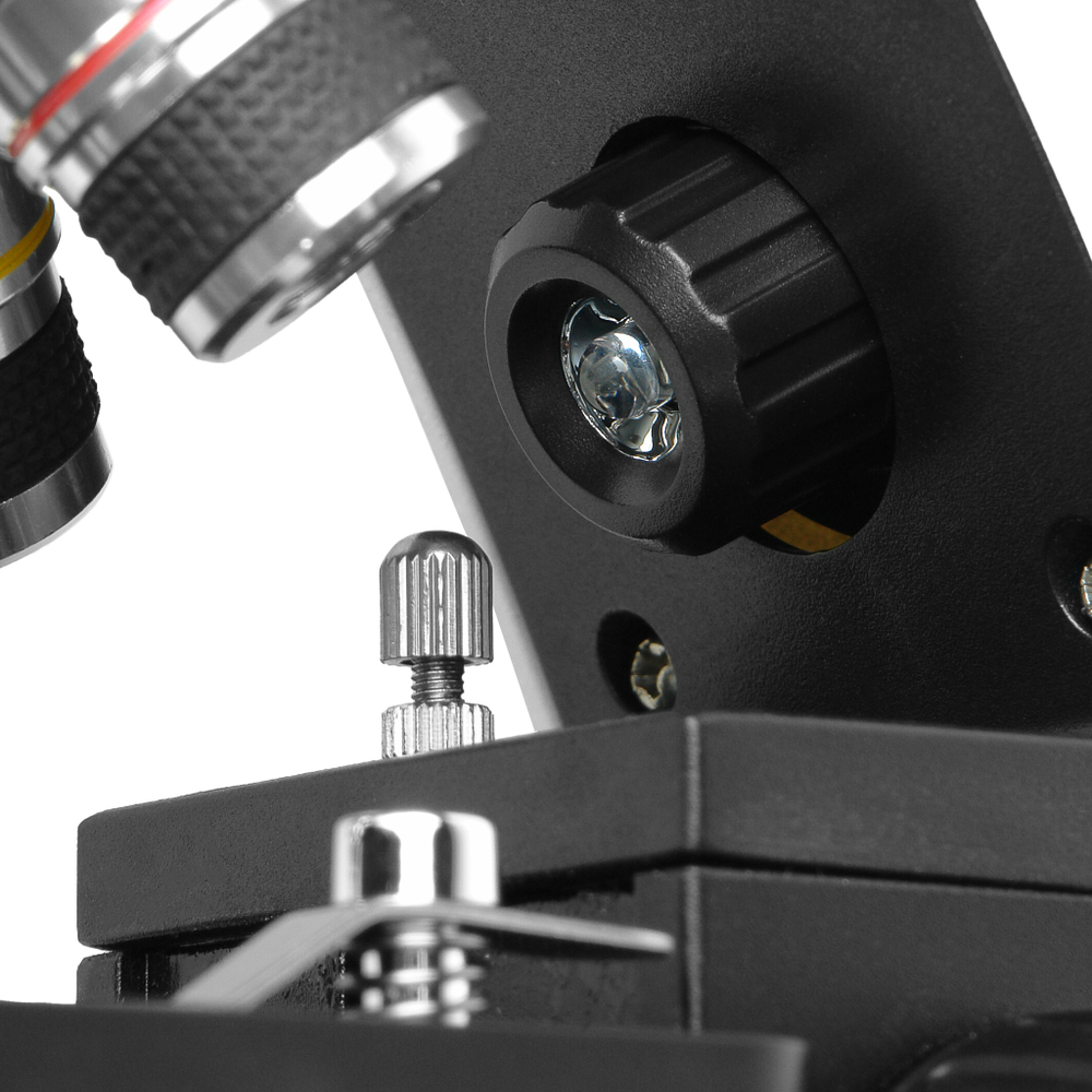 Микроскоп позволяет работать с увеличением до 1600х – это абсолютный максимум для учебных микроскопов бюджетного класса.