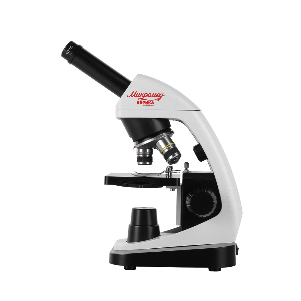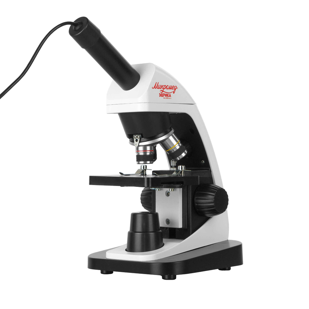 Микроскоп Эврика 40х-1600х (вар. 3) с видеоокуляром – бюджетный цифровой микроскоп из линейки учебных микроскопов Микромед. За счет наличия в комплекте цифрового видеоокуляра световой микроскоп в считанные секунды превращается в цифровой – просто нужно заменить оптический окуляр на видеоокуляр.