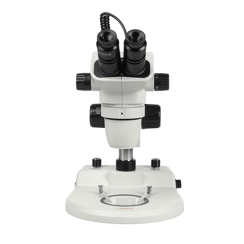 Микроскоп комплектуется окулярами широкого поля WF 10х/22. Общее увеличение микроскопа с ними составляет от 6.7х до 45х. Окуляры имеют конструкцию с вынесенным выходным зрачком, что позволяет вести комфортное наблюдение как в очках, так и без них. Каждый окуляр микроскопа снабжен собственным механизмом диоптрийной коррекции. Для микроскопа доступны разнообразные дополнительные окуляры с увеличением до 30х.