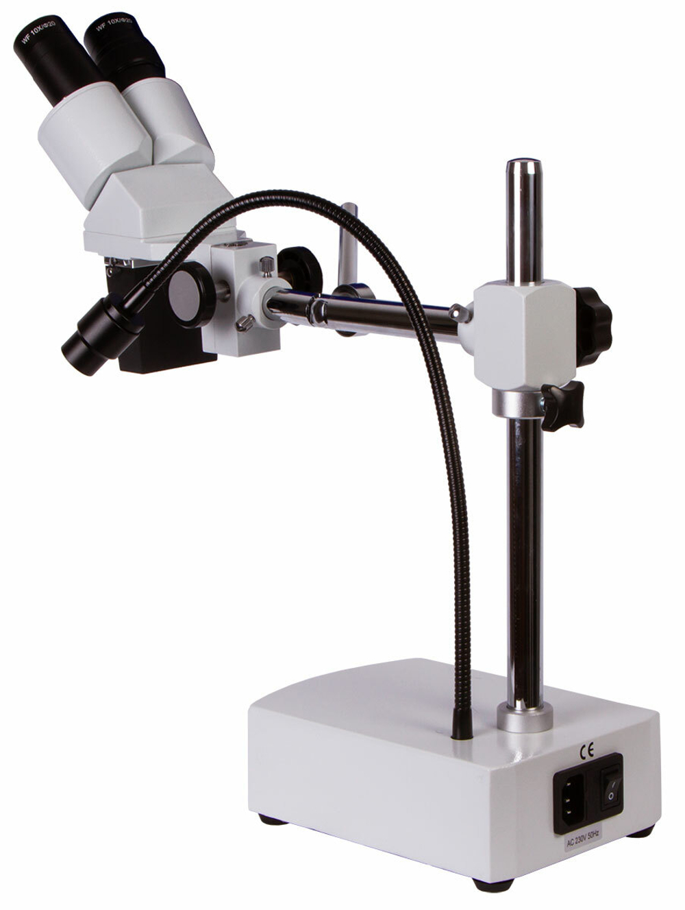 Bresser Biorit ICD CS 5–20x LED – стереоскопический микроскоп для изучения особо крупных объектов на увеличении от 5 до 20 крат. Этот микроскоп может похвастаться очень большим рабочим расстоянием – оно составляет 230 мм. А так как он еще имеет поворотную штангу длиной 210 мм, то работать можно не только с объемными, но и с протяженными объектами. Микроскоп станет отличным рабочим инструментом для человека, который занимается ремонтом электроники, проводит оценку ювелирных изделий или держит дома небольшую любительскую мастерскую.