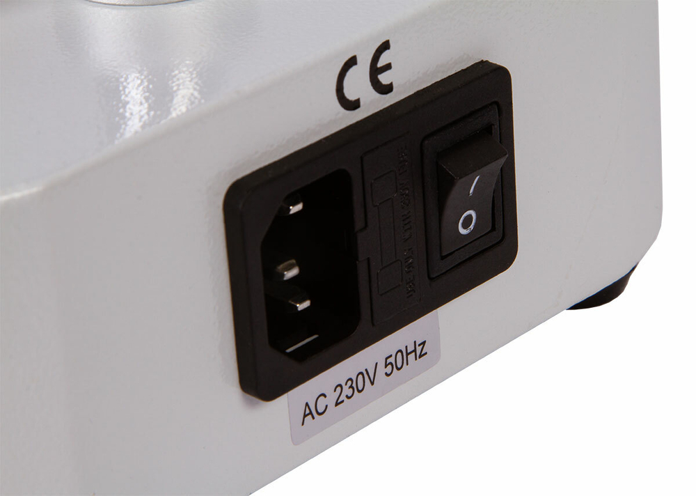Микроскоп оснащен бинокулярной насадкой и использует широкоугольную оптику. Объективы сменные и различаются по степени приближения. Система освещения устроена необычным образом: это не фиксированный источник света, а светодиод, закрепленный на длинном гибком штативе. Яркость подсветки можно регулировать, а для ее работы требуется подключение к сети переменного тока.