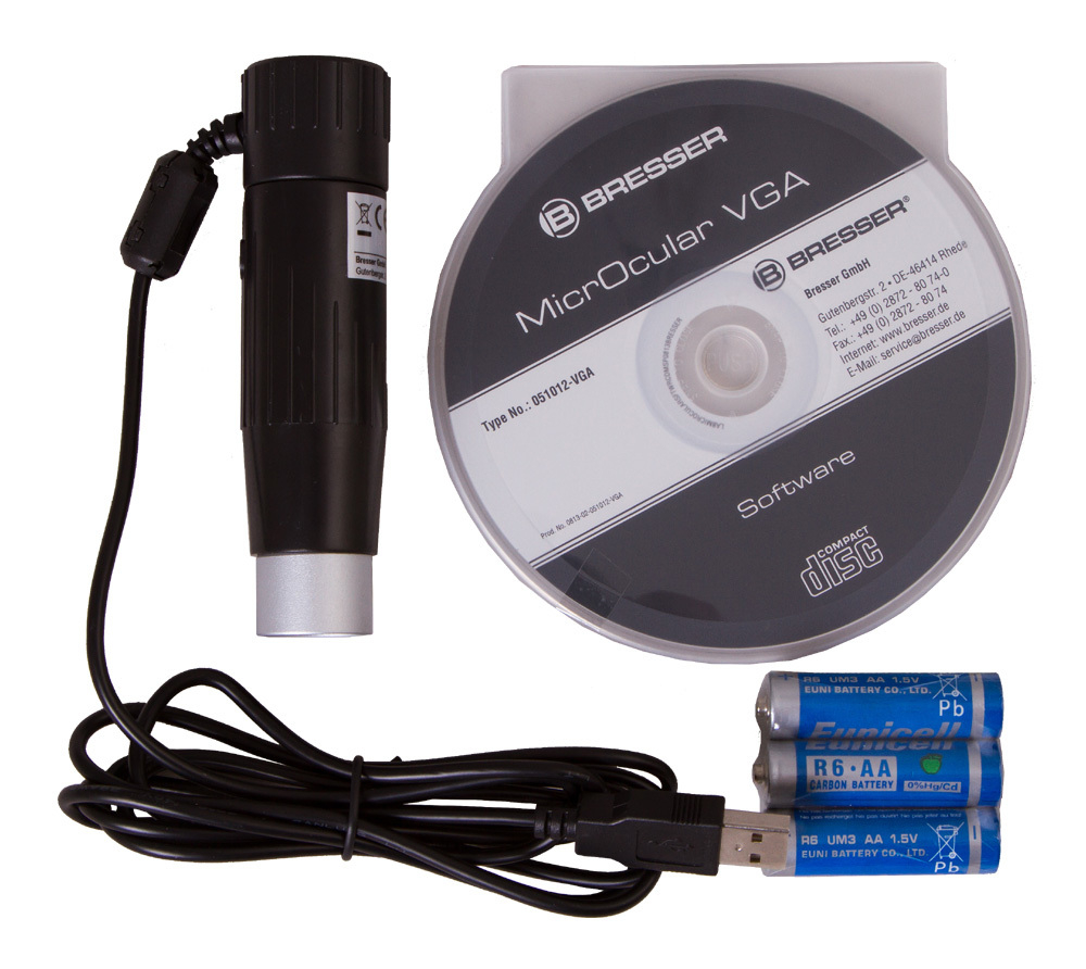 Цифровой микроскоп Bresser National Geographic 40–1024x имеет револьверное устройство на 3 объектива, 2 оптических окуляра разной кратности и линзу Барлоу. В диапазоне от 40 крат до 1024 крат доступно большое количество увеличений. Вместо обычного окуляра можно использовать цифровую камеру (в комплекте). Она устанавливается в окулярную трубку и через прилагаемый кабель передает изображение прямо на экран компьютера. Программа для работы с камерой идет в комплекте. Она предоставляет широкие возможности по работе с изображениями – снимки можно сохранять, редактировать, формировать в архивы.