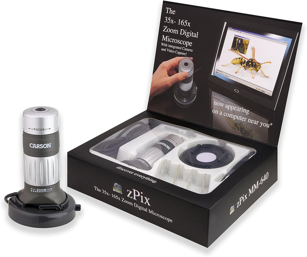 Carson MM-640 является мощным микроскопом с цифровым зумом, который показывает увеличенное изображение прямо на мониторе. Внушительное усиление увеличения масштаба изображения позволяет видеть самые мелкие детали объектов.