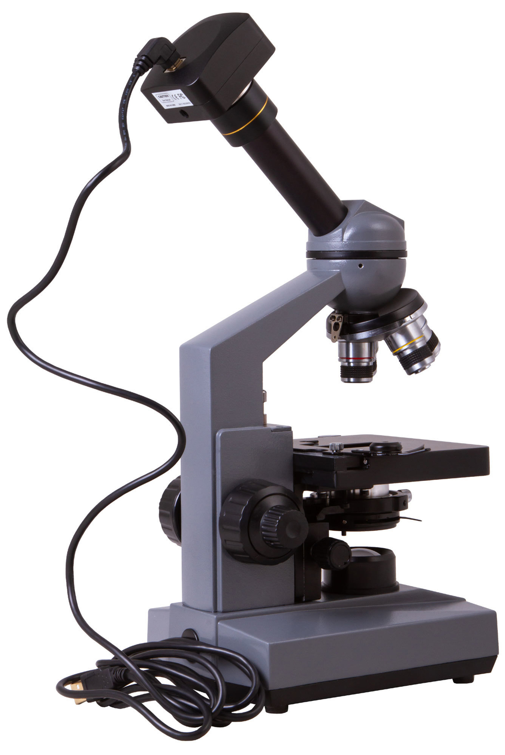Основная особенность микроскопа – цифровая камера. Она устанавливается вместо штатного окуляра прямо в окулярную трубку. Для подключения к компьютеру используется комплектный USB-кабель. Камера передает картинку в режиме реального времени в разрешении до 2048х1536 пикс. С ее помощью можно делать отдельные фотоснимки или записывать видеоролики. Камера станет отличным решением для записи ключевых шагов исследований, создания презентаций или видеоуроков. Необходимое программное обеспечение включено в комплект поставки.
