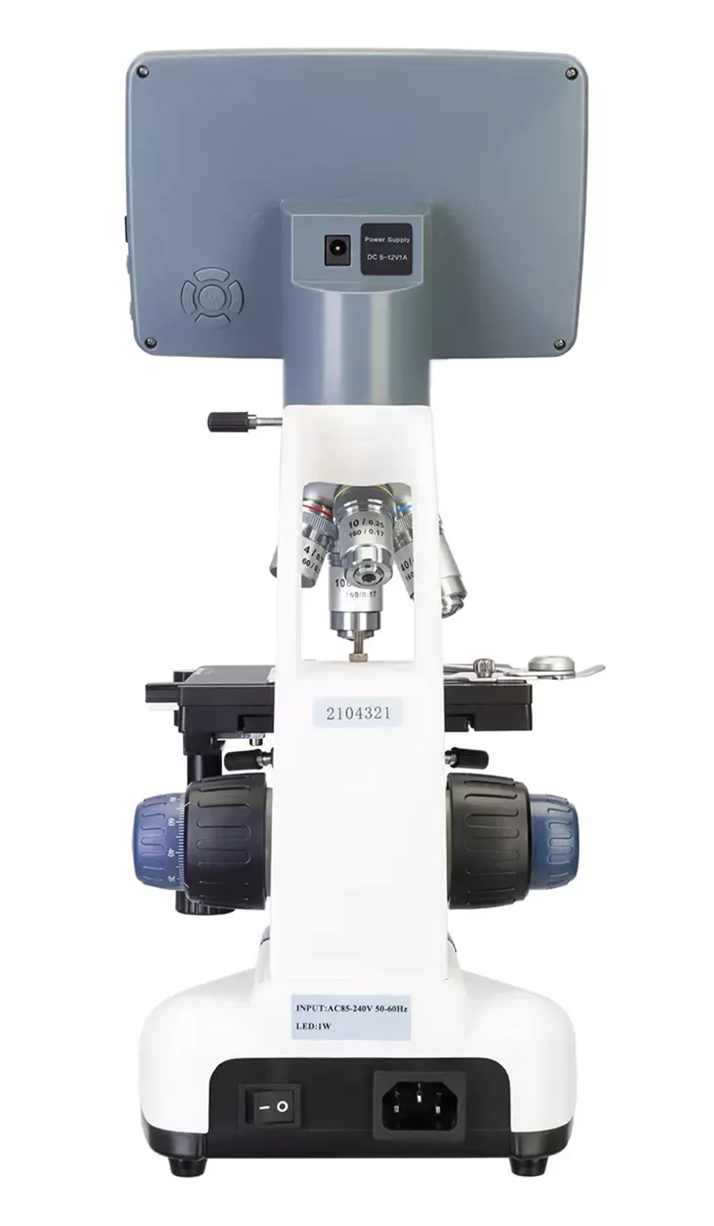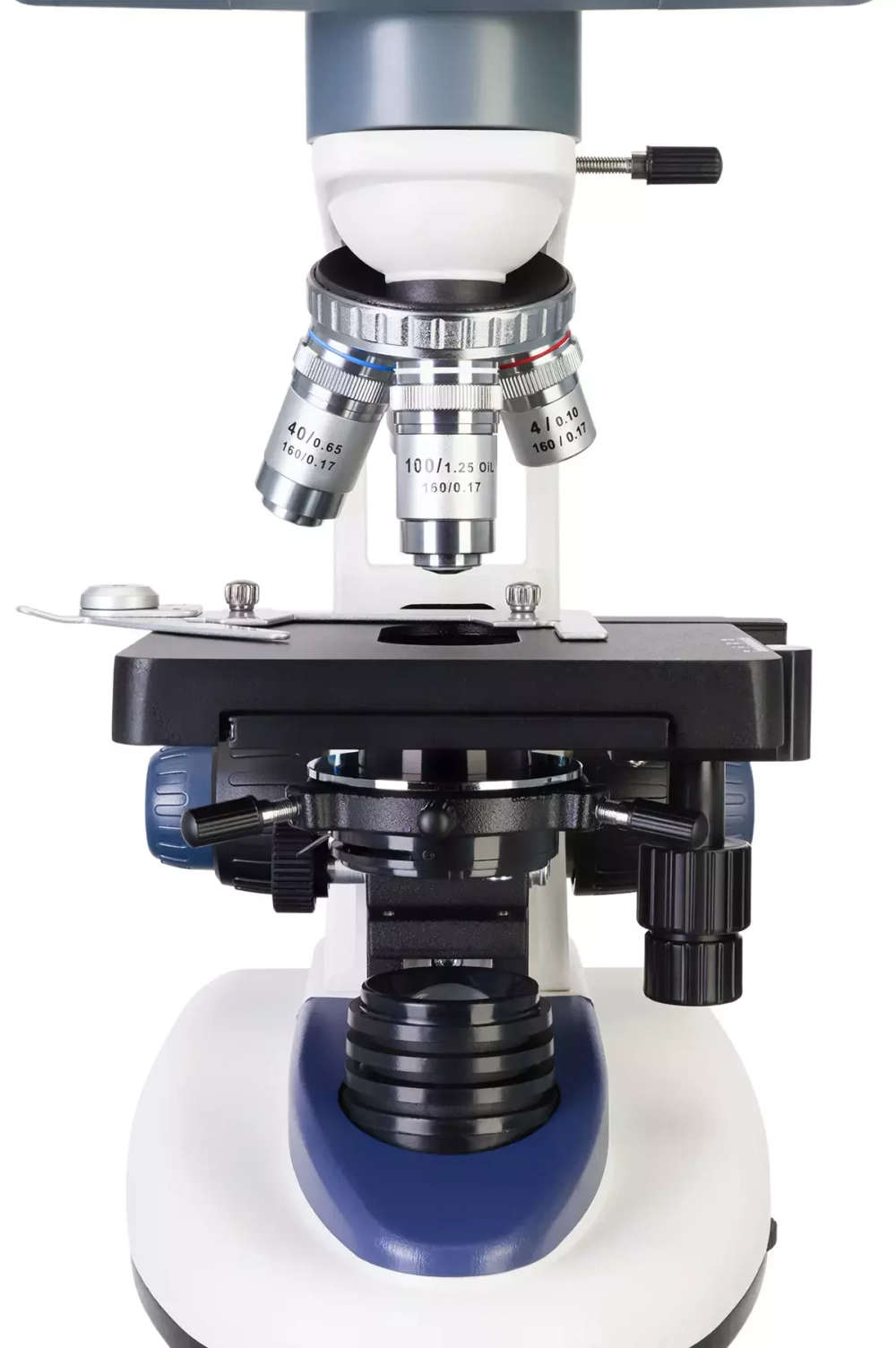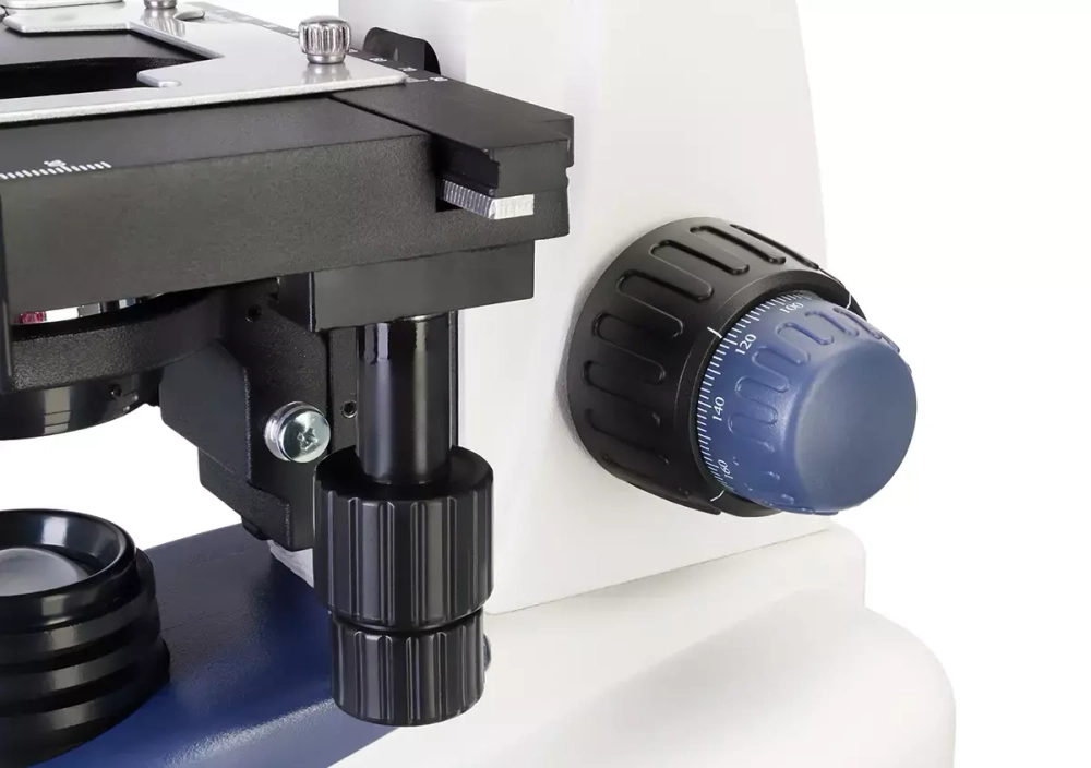 Оптическая система микроскопа состоит из ахроматических объективов, которые минимизируют количество аберраций, позволяя наблюдать четкое и детализированное изображение. В револьверное устройство установлено четыре объектива, причем 100-кратный можно использовать для наблюдений иммерсионным методом. Общее оптическое увеличение составляет от 40 до 1000 крат, но при помощи цифрового зума кратность можно повысить до 2000х. Картинка на ЖК-экран выводится в реальном времени.