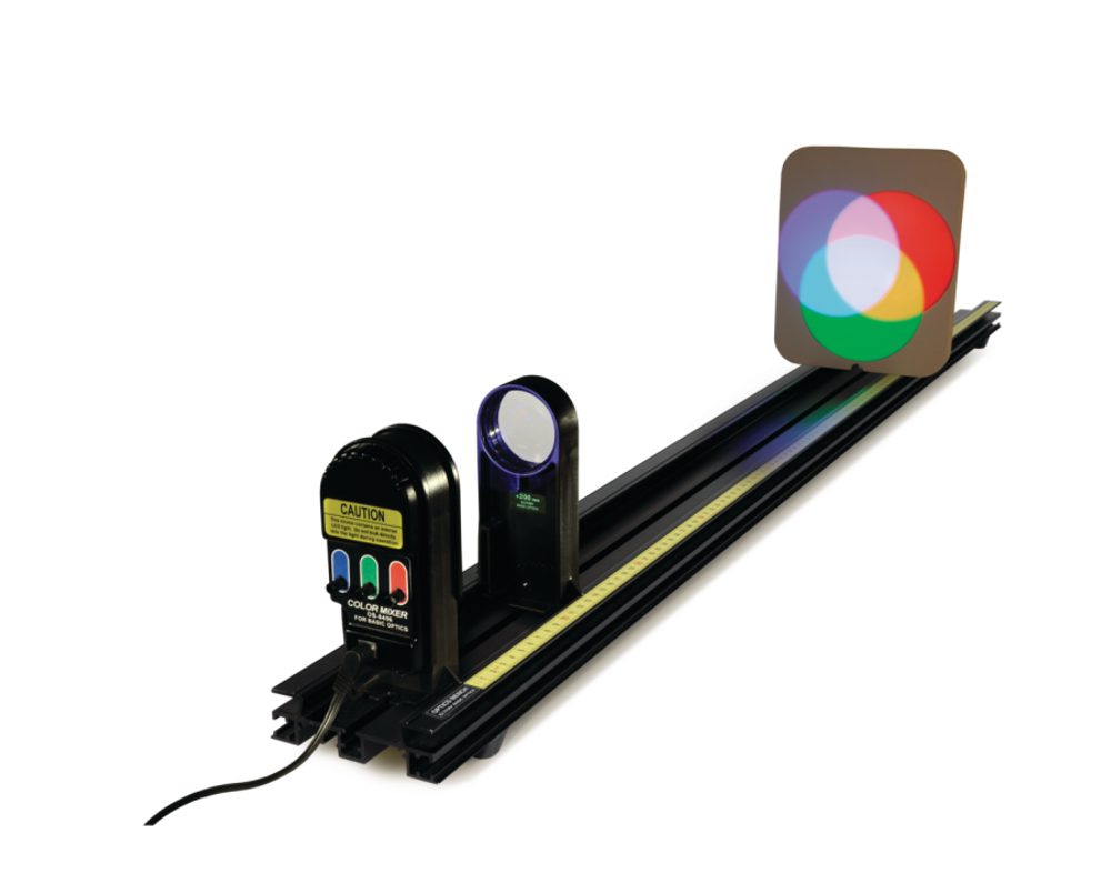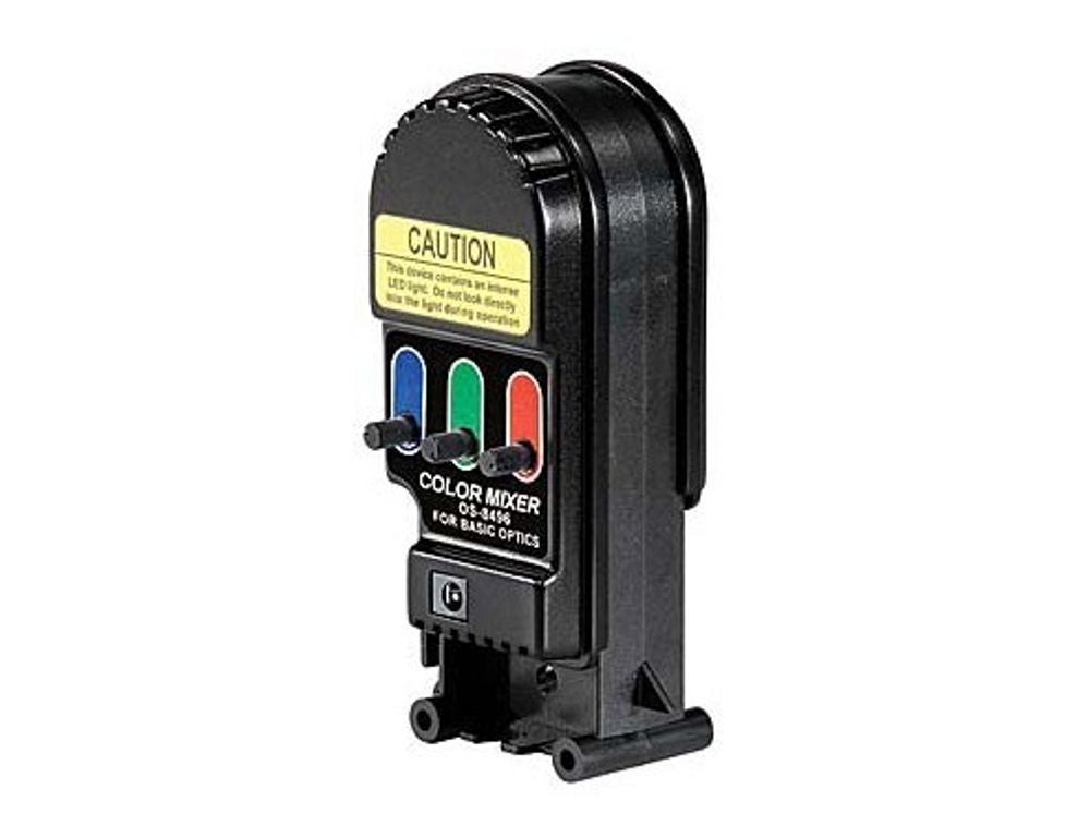 Микшер цветов цветовой для оптической системы PASCO может использоваться самостоятельно, как демонстрационный инструмент, так и в качестве дополнительного элемента для оптической системы PASCO.