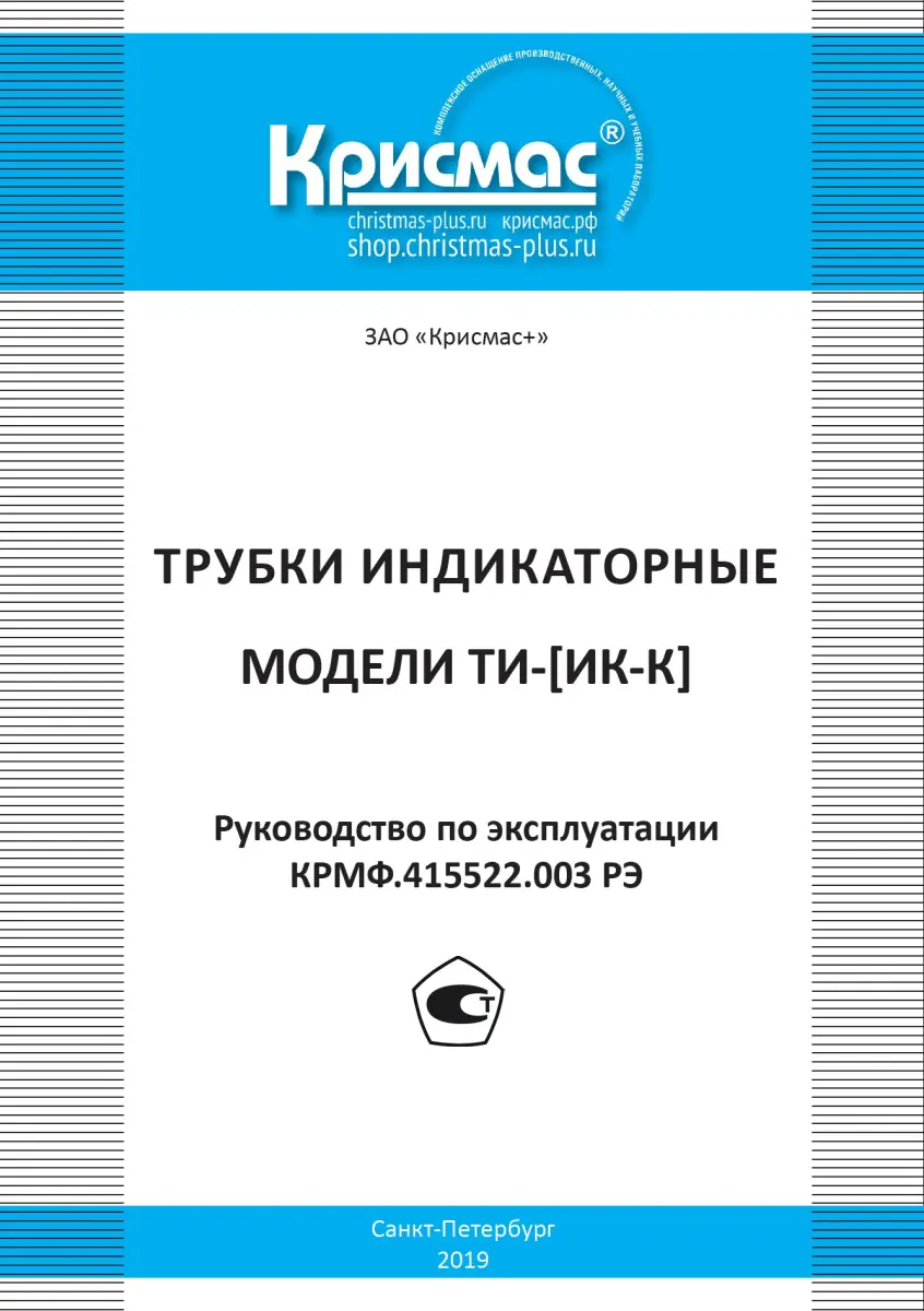 КРМФ.415522.003 Индикаторные трубки модели ТИ-[ИК-К]. Руководство по эксплуатации со свидетельством о поверке;