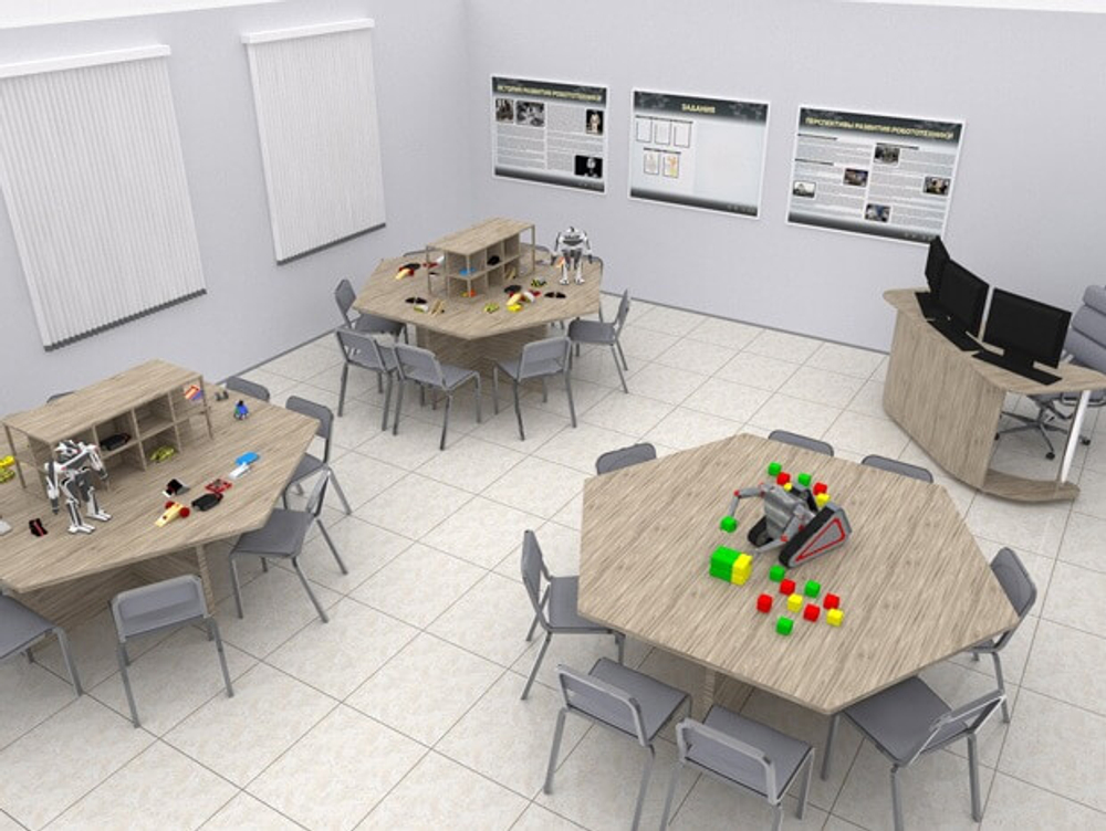 - Площадка конструирования "Юный робототехник": 1200 х 900 х 750