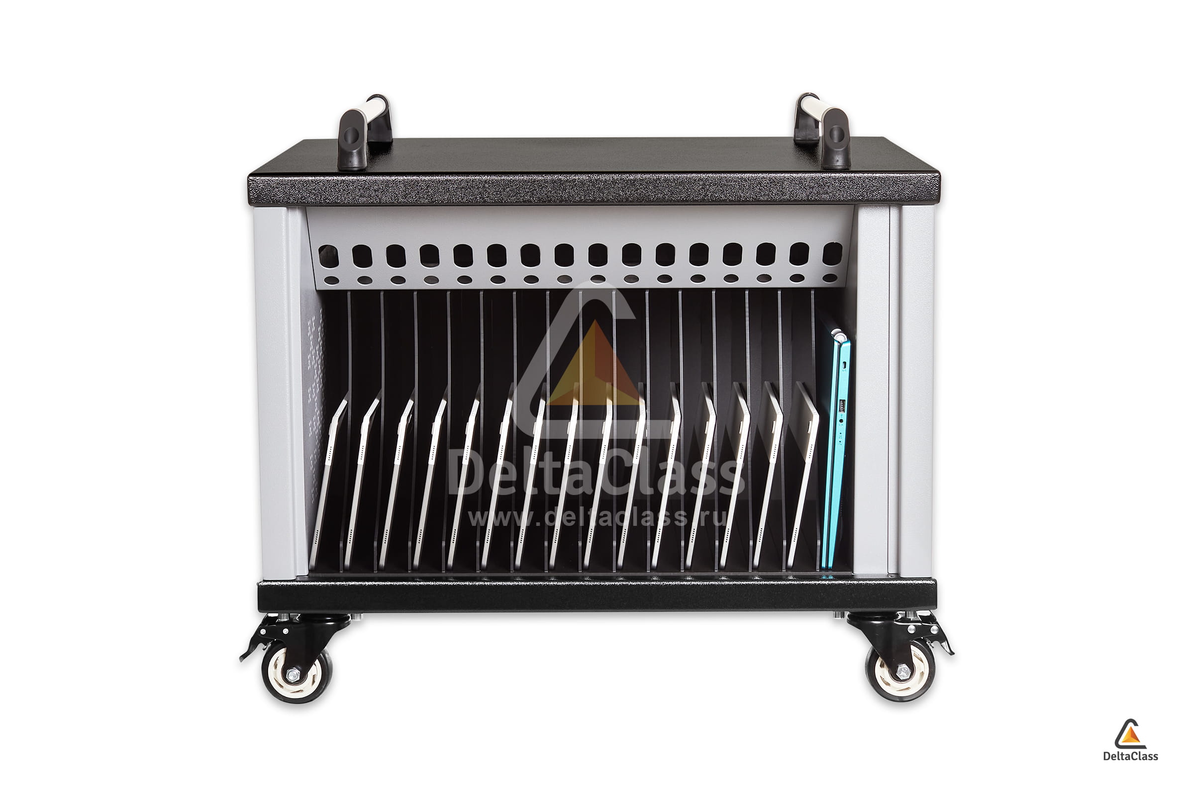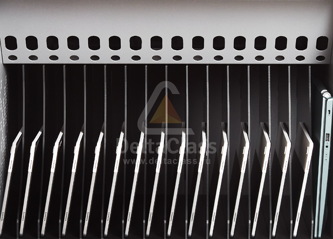 Мобильные системы DELTACLASS позволяют удобно, безопасно и компактно размещать, обслуживать, хранить и ориентировать в пространстве программно-аппаратный образовательный комплекс. При этом постоянно сохраняется его полная работоспособность и возможность в любой момент воспользоваться в произвольном месте, не предпринимая дополнительных действий и не обладая специальными компетенциями – ноутбуки будут всегда полностью заряжены и не перегреются, а беспроводная сеть обеспечит стабильное быстрое локальное и глобальное взаимодействие.