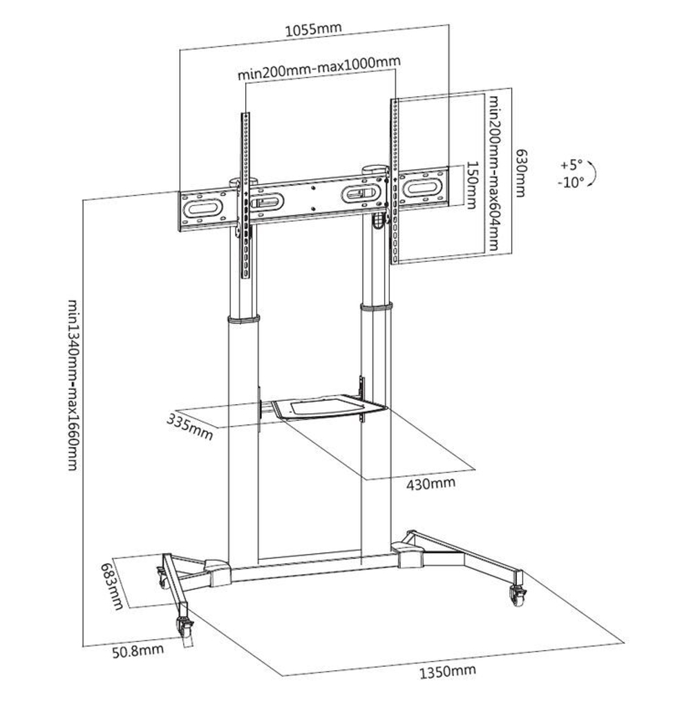 Мобильная стойка Digis DSM-P1060CL для интерактивных панелей и экранов от 55" до 100" и весом до 100 кг.