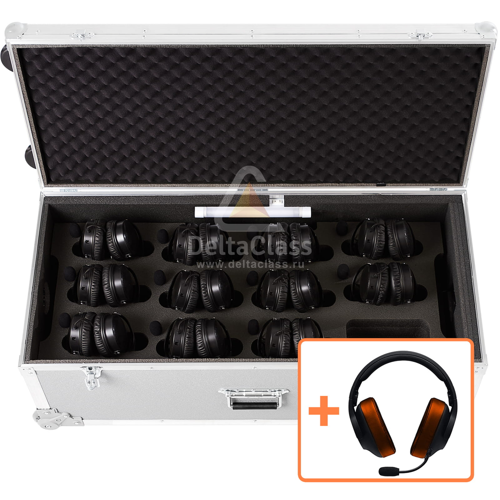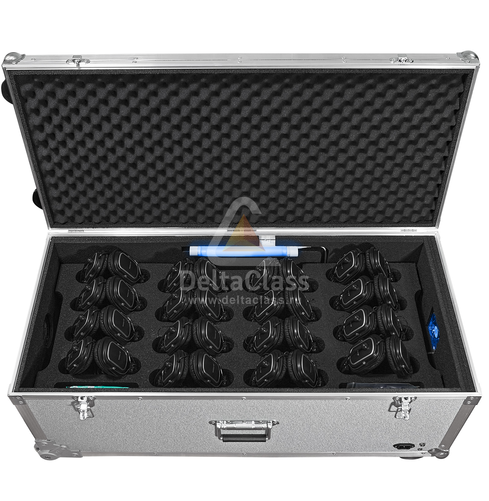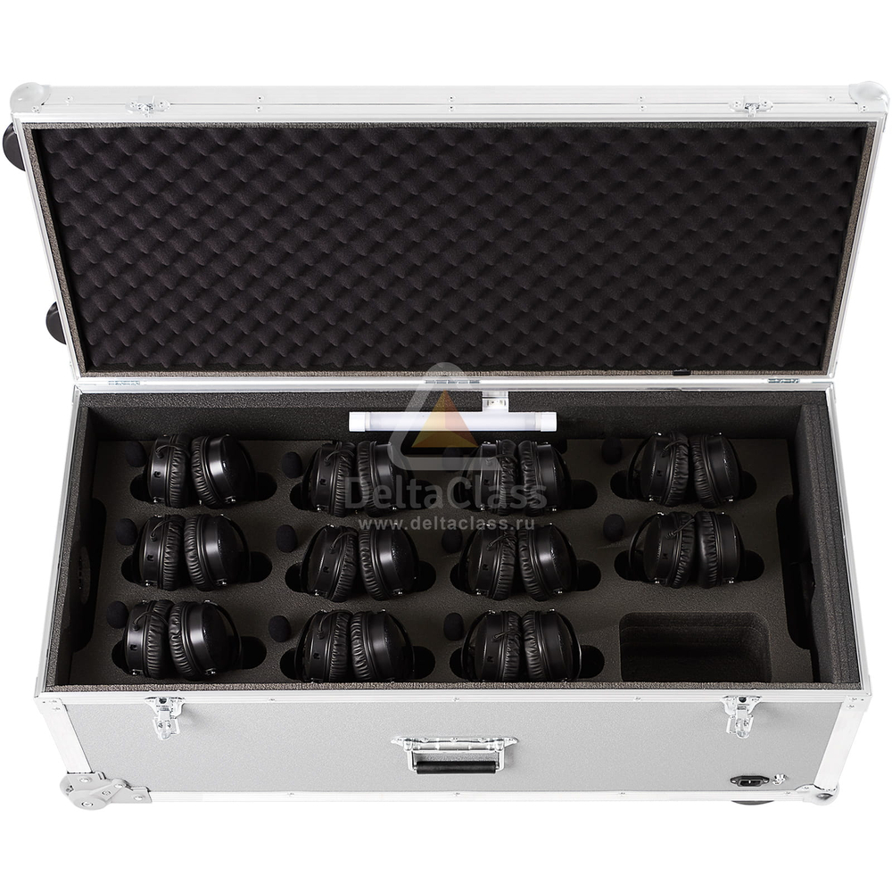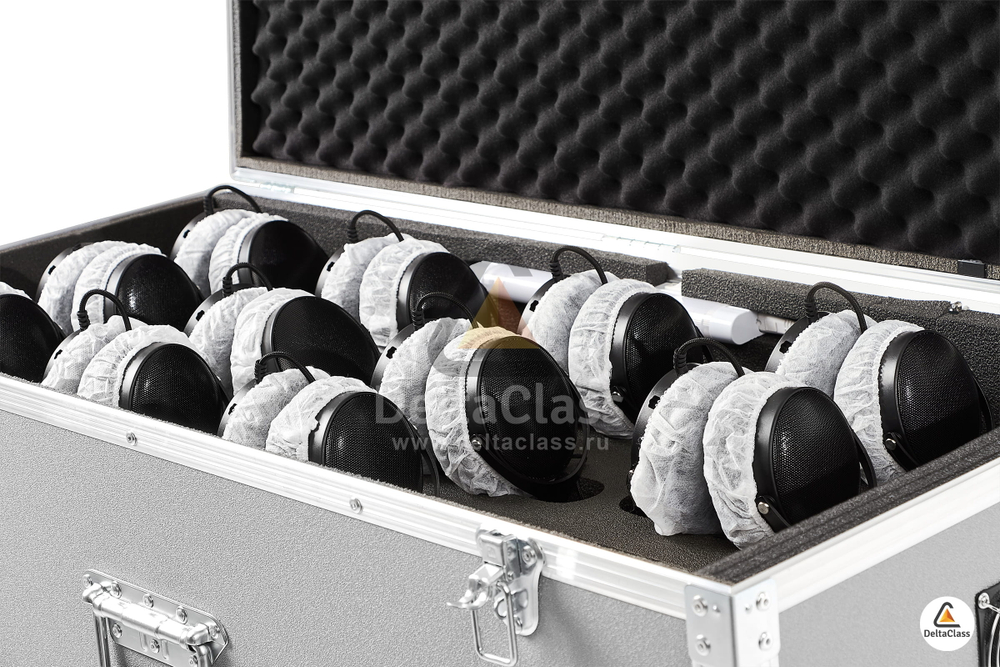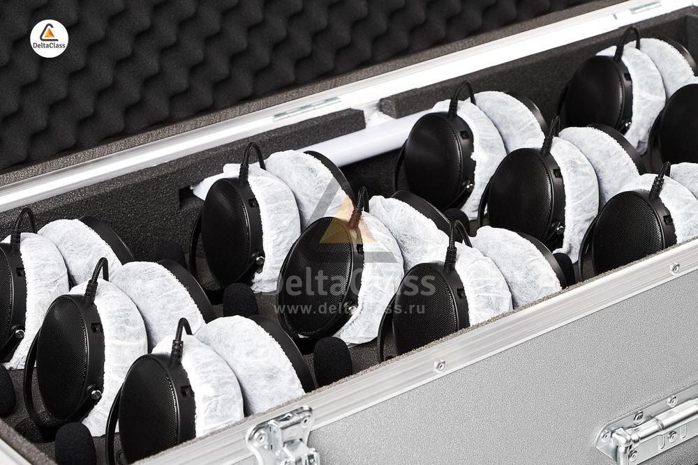 - Мягкий ложемент с индивидуальными ячейками для размещения до 20 лингафонных гарнитур