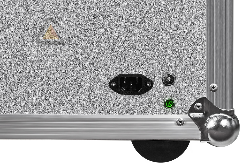 - Специальный световой индикатор на панели кейса сигнализирует о работе системы обеззараживания