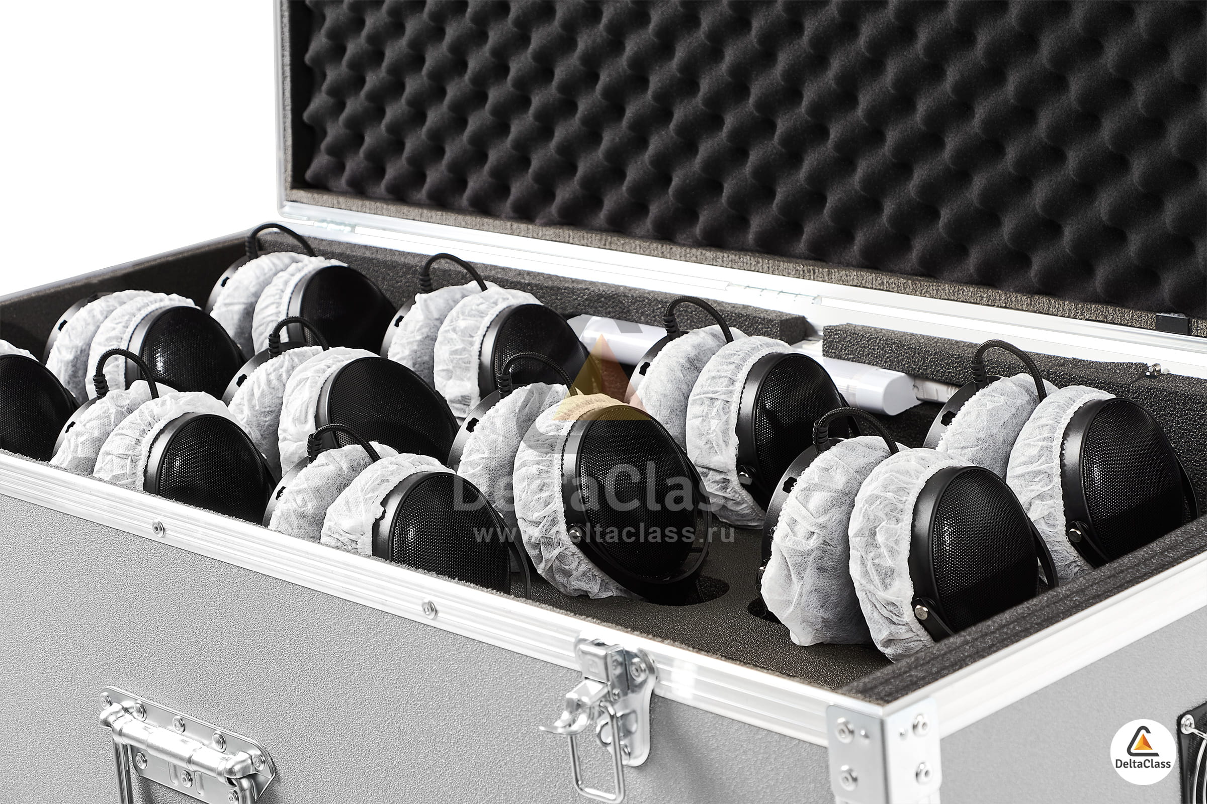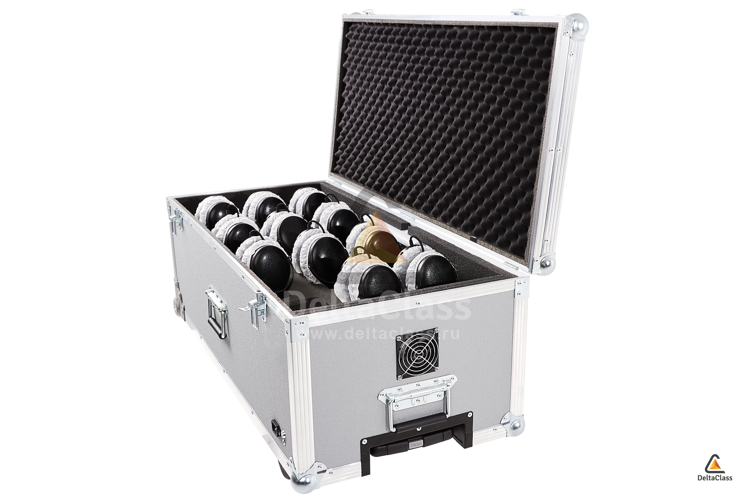 - Размеры индивидуальных ячеек подобраны таким образом, чтобы оптимально разместить практически любые гарнитуры с амбушюрами, возможно индивидуальное изготовление
