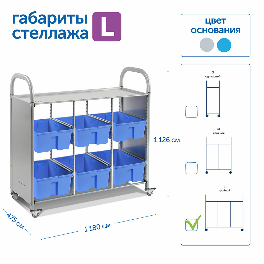 Мобильный стеллаж Сенсориум L с 6 средними контейнерами